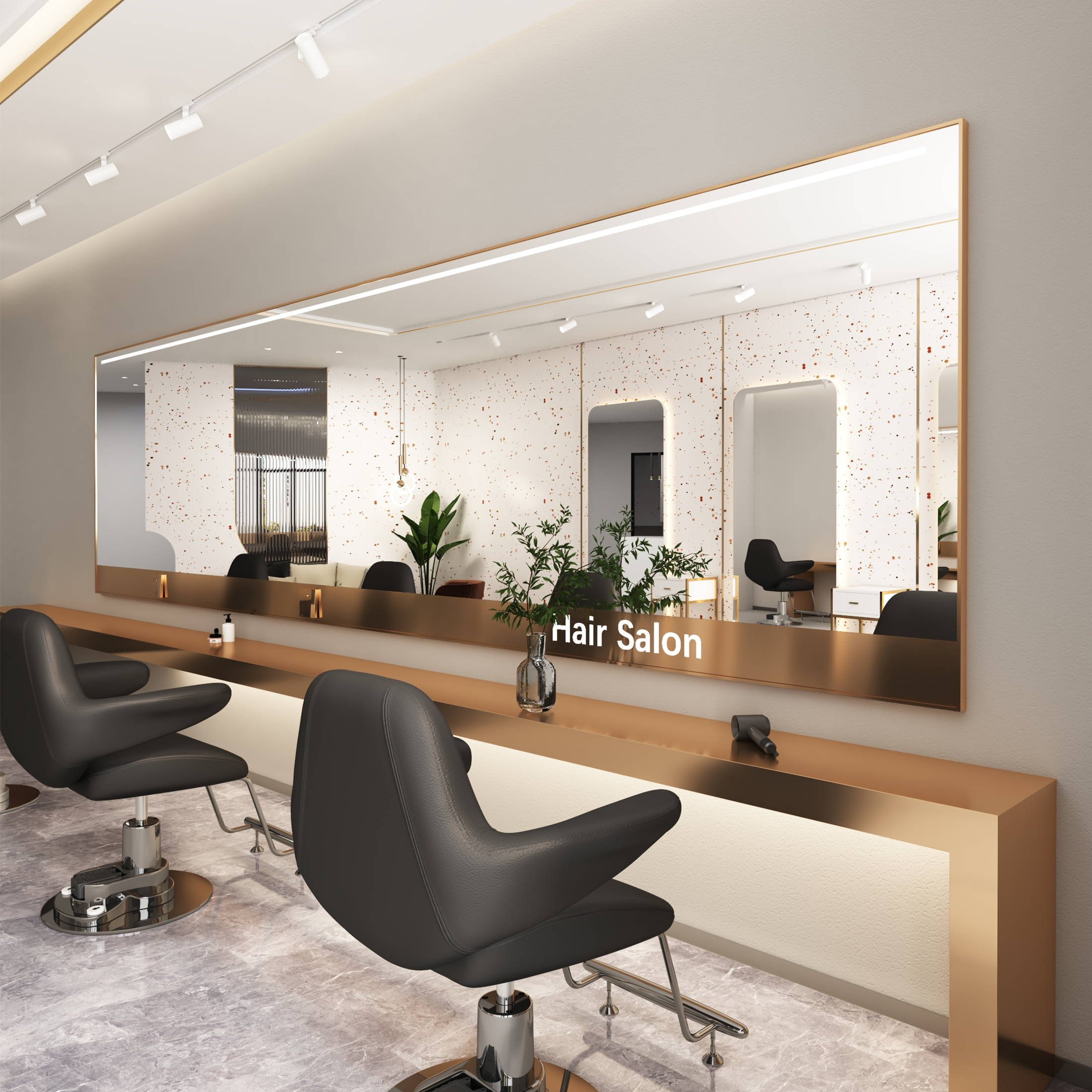 メーカークロスボーダーbarber理髪店鏡ledライト全身鏡金色美髪鏡ステンレス鏡台