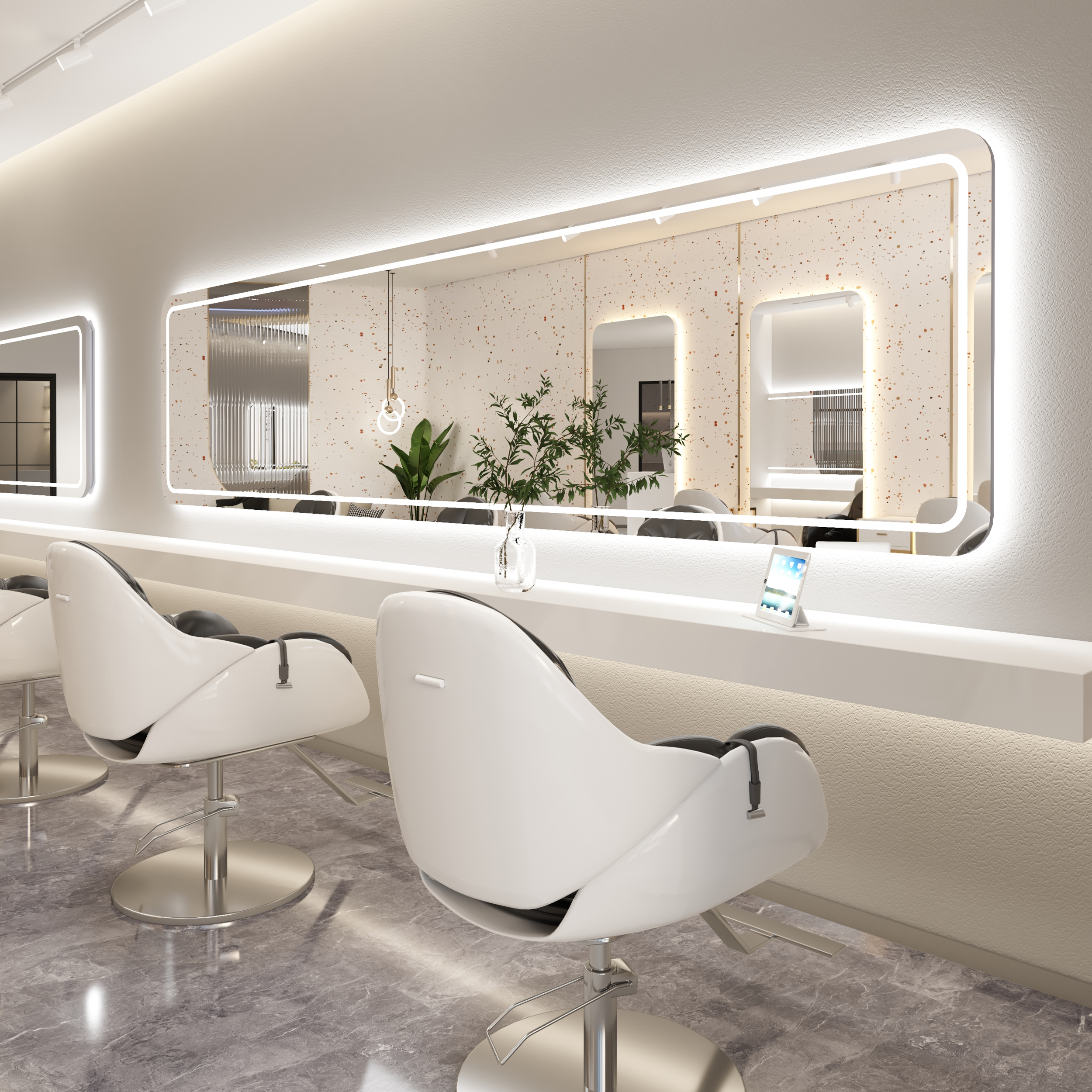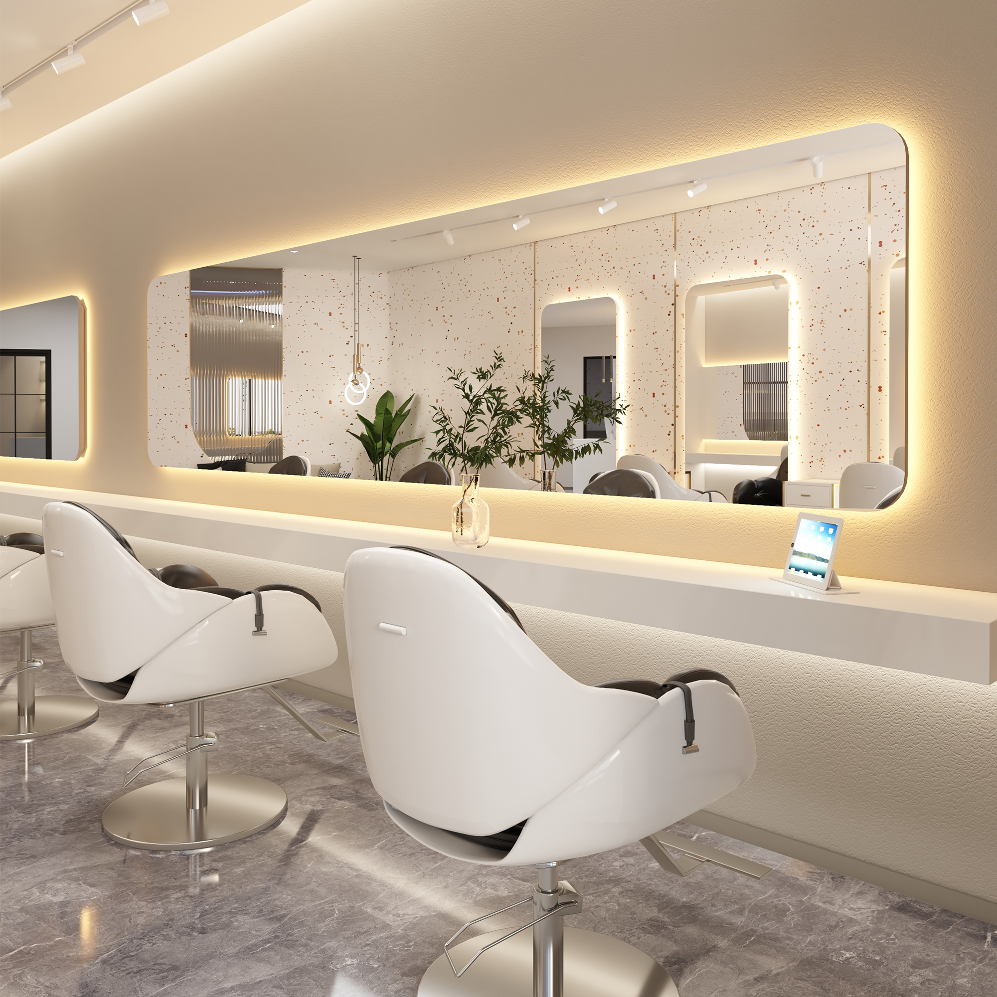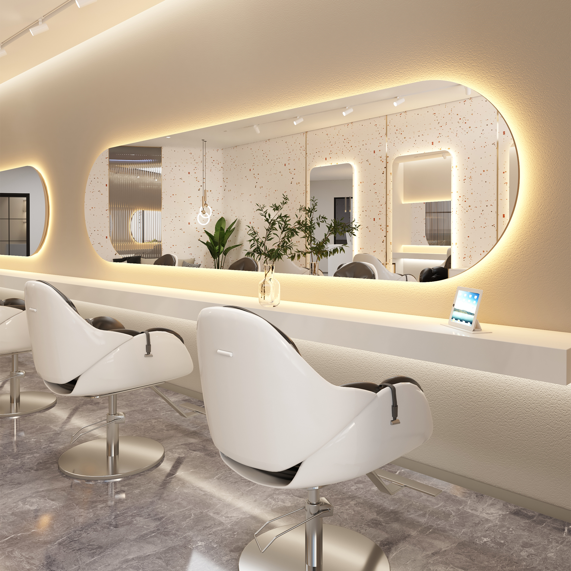 ネットレッド理髪店美髪鏡台サロン潮店片面壁掛け鏡シンプルランプ付き理髪鏡サロン専用