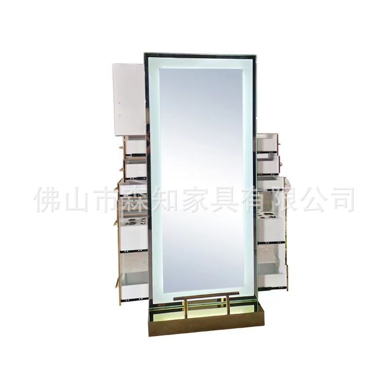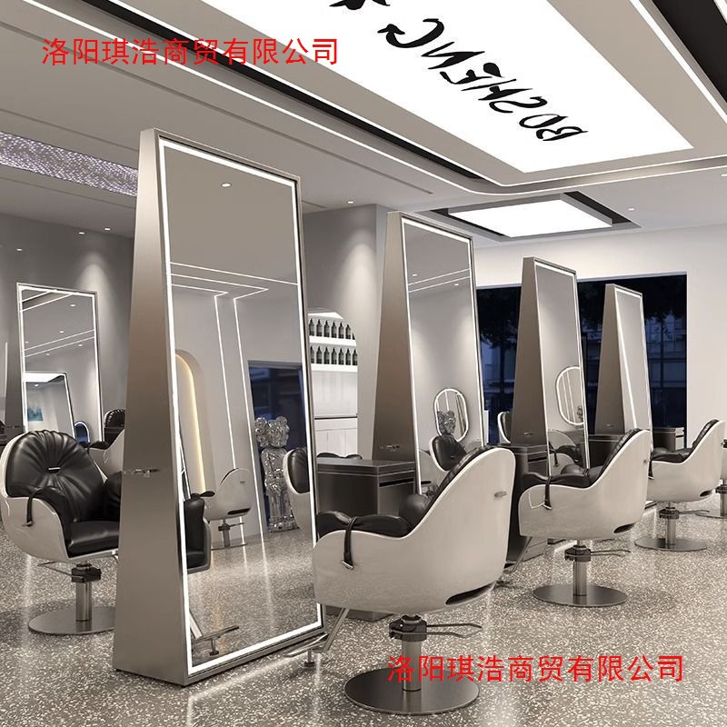 理发店镜子落地单双面带灯不锈钢网红剪发烫染镜发廊美发镜台