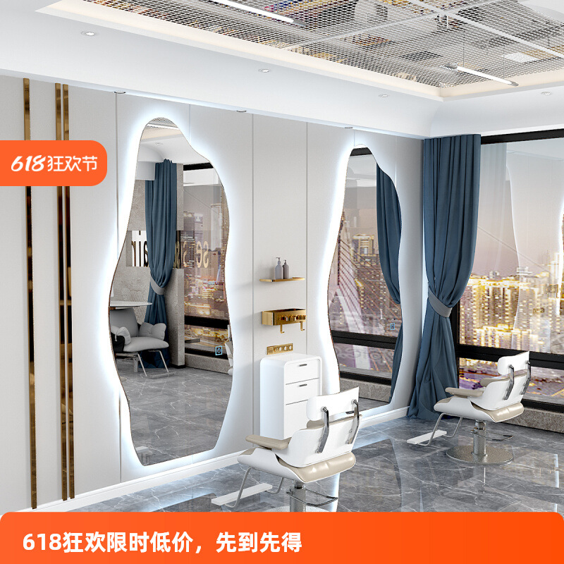 发廊专用子带灯镜台落地烫染大通挂墙镜网红一体剪发理发店美发店
