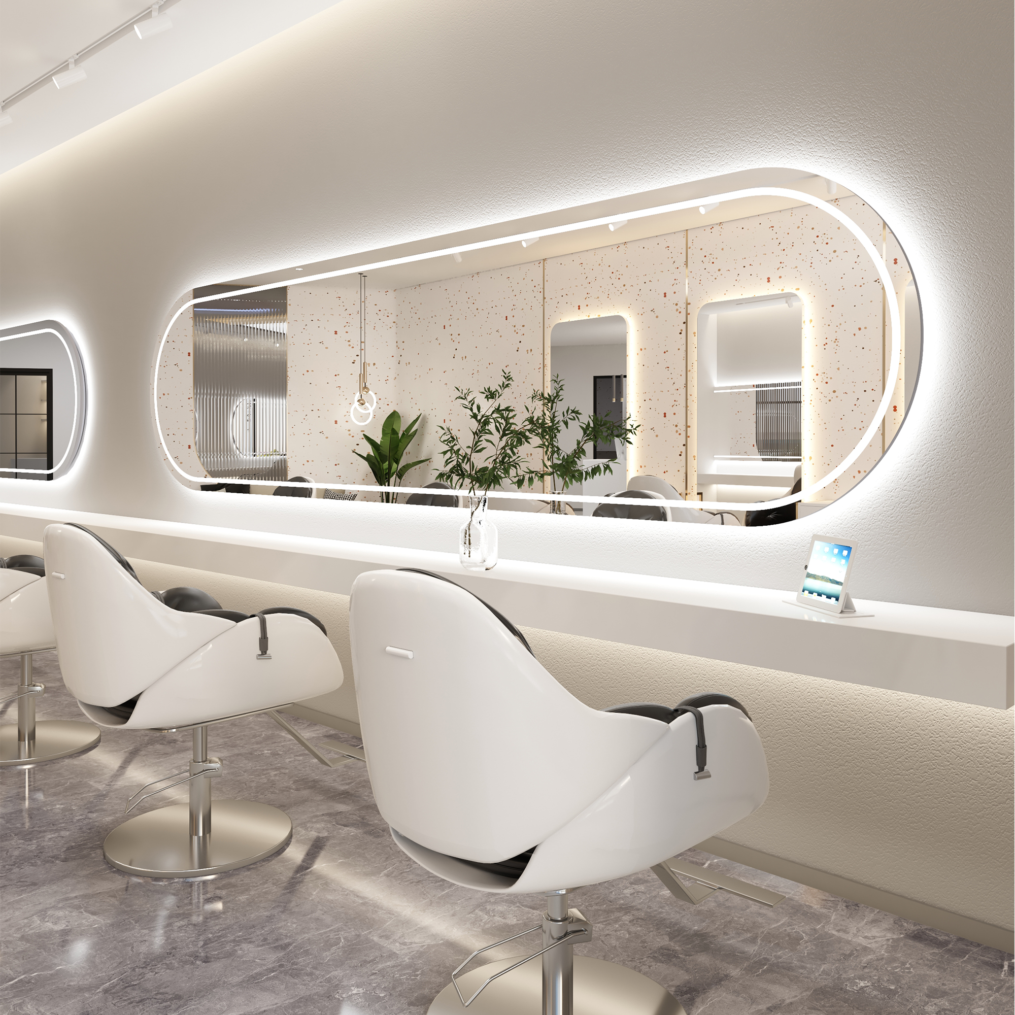 インターネット有名人理髪店ミラー壁掛けホテルバスルーム特別な LED ライト理髪ミラーテーブル片面床ミラーライト付き