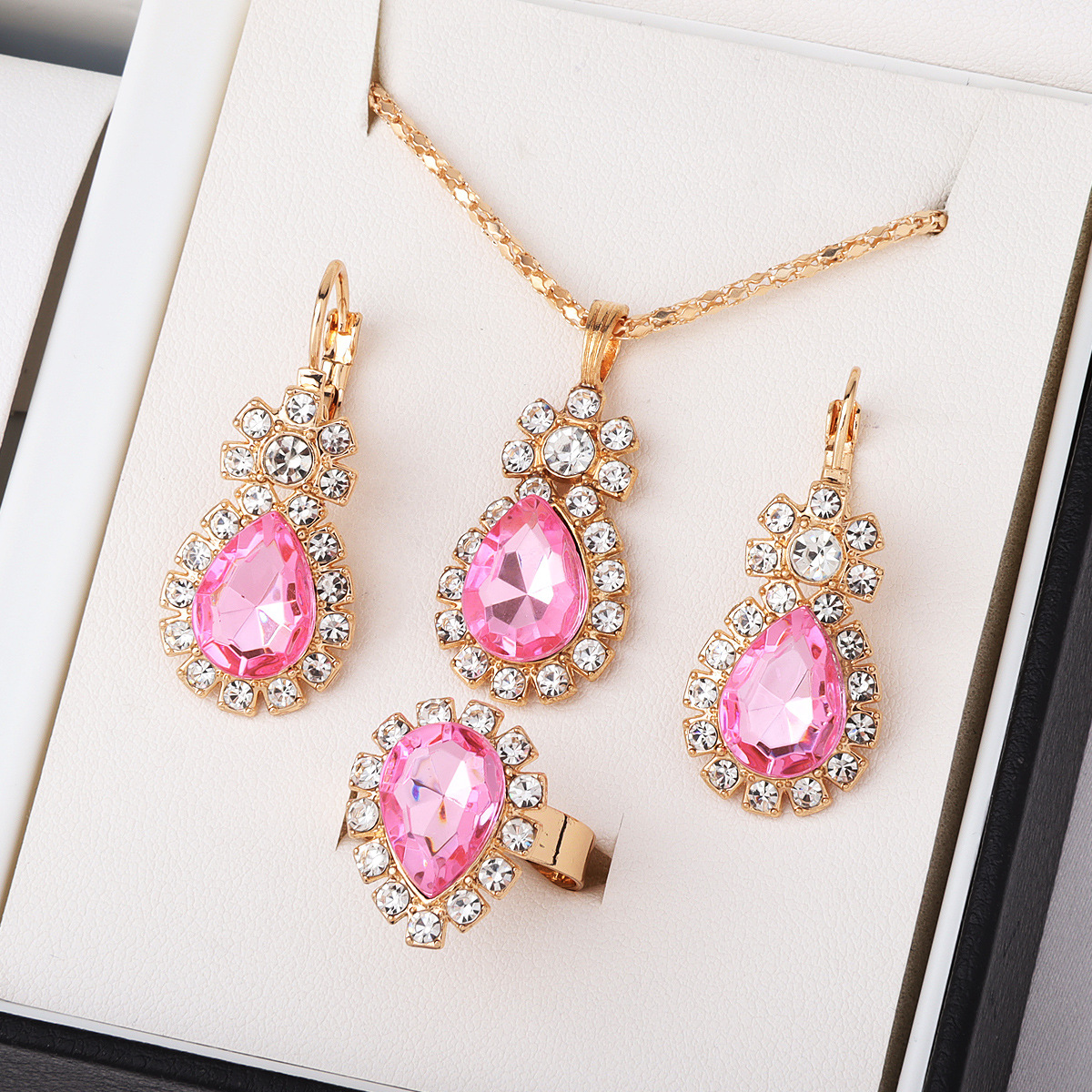 アマゾンクロスボーダー欧米水晶愛ジュエリーファッション気質桃心ネックレスイヤリング指輪ブレスレット4点セット