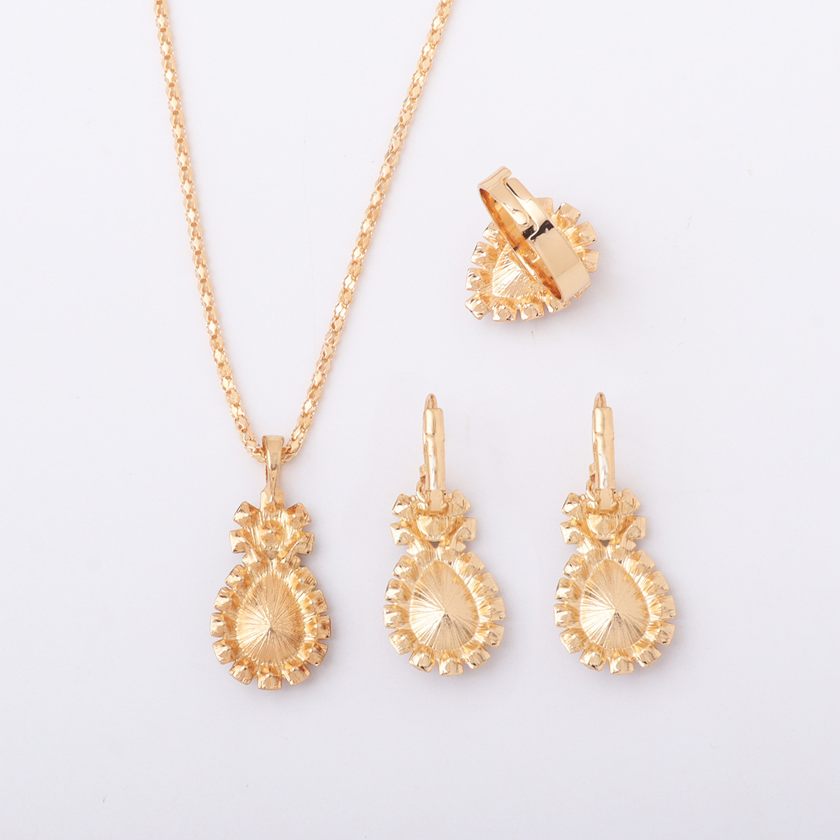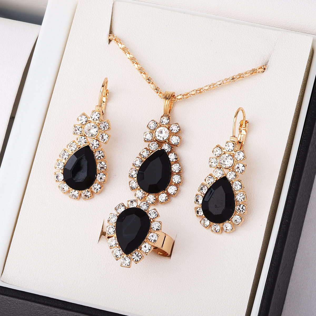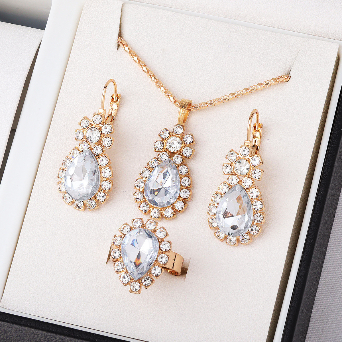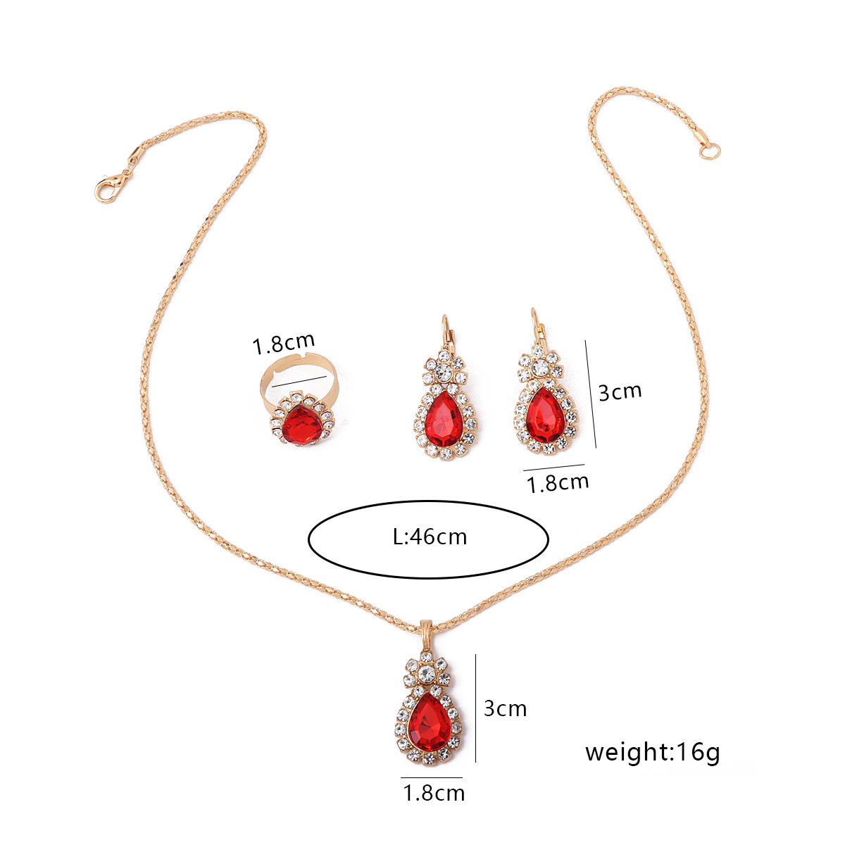 合金クロスボーダーの軽豪華なダイヤモンドの幾何学的なネックレスの指輪のイヤリングの3つのセットのファッションの簡単な組み合わせのアクセサリーのセット