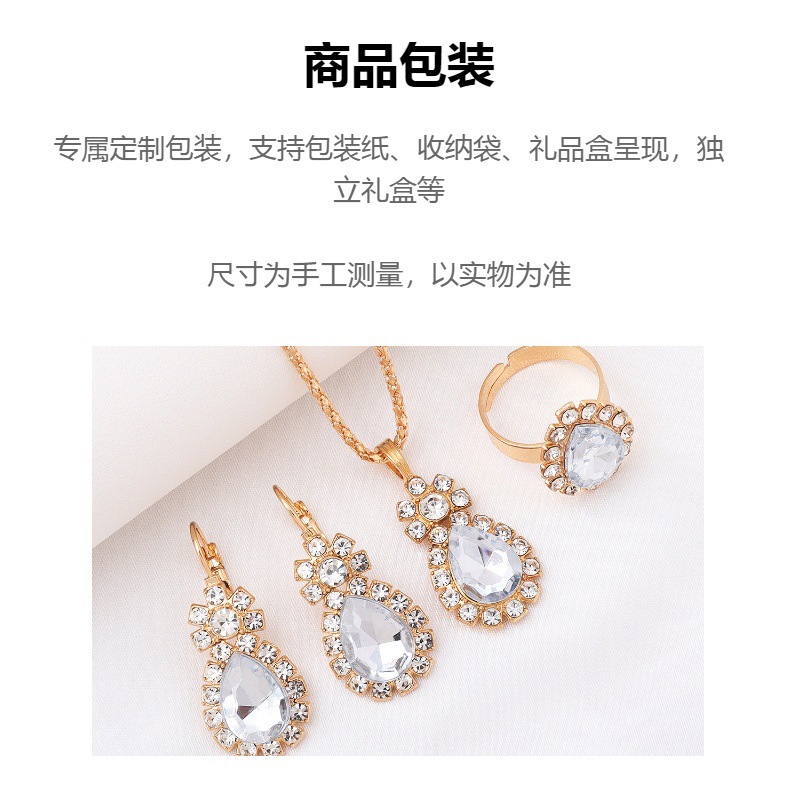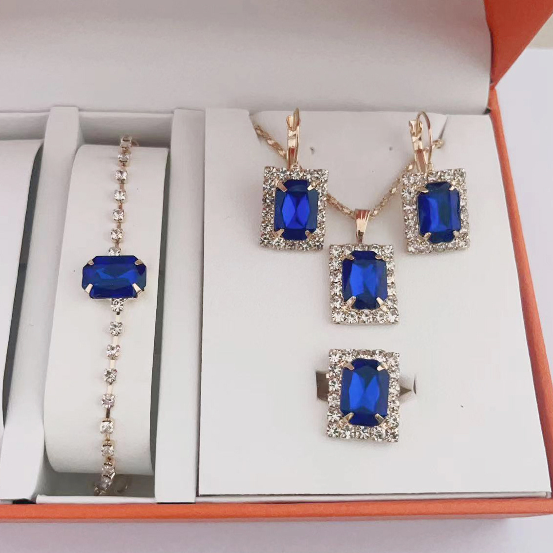 欧米の新型の方ドリルのアクセサリーセットのファッションカラーのダイヤモンドのネックレスのイヤリングの指輪のブレスレットのセットの花嫁のアクセサリー