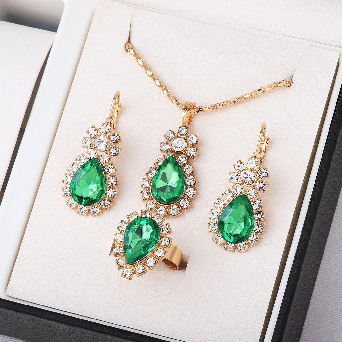 緑のペンダントの宝石のネックレスの指輪のピアスの3つのセットの女性の夏の大衆の高級な設計感の鎖の鎖は軽くて豪華です。