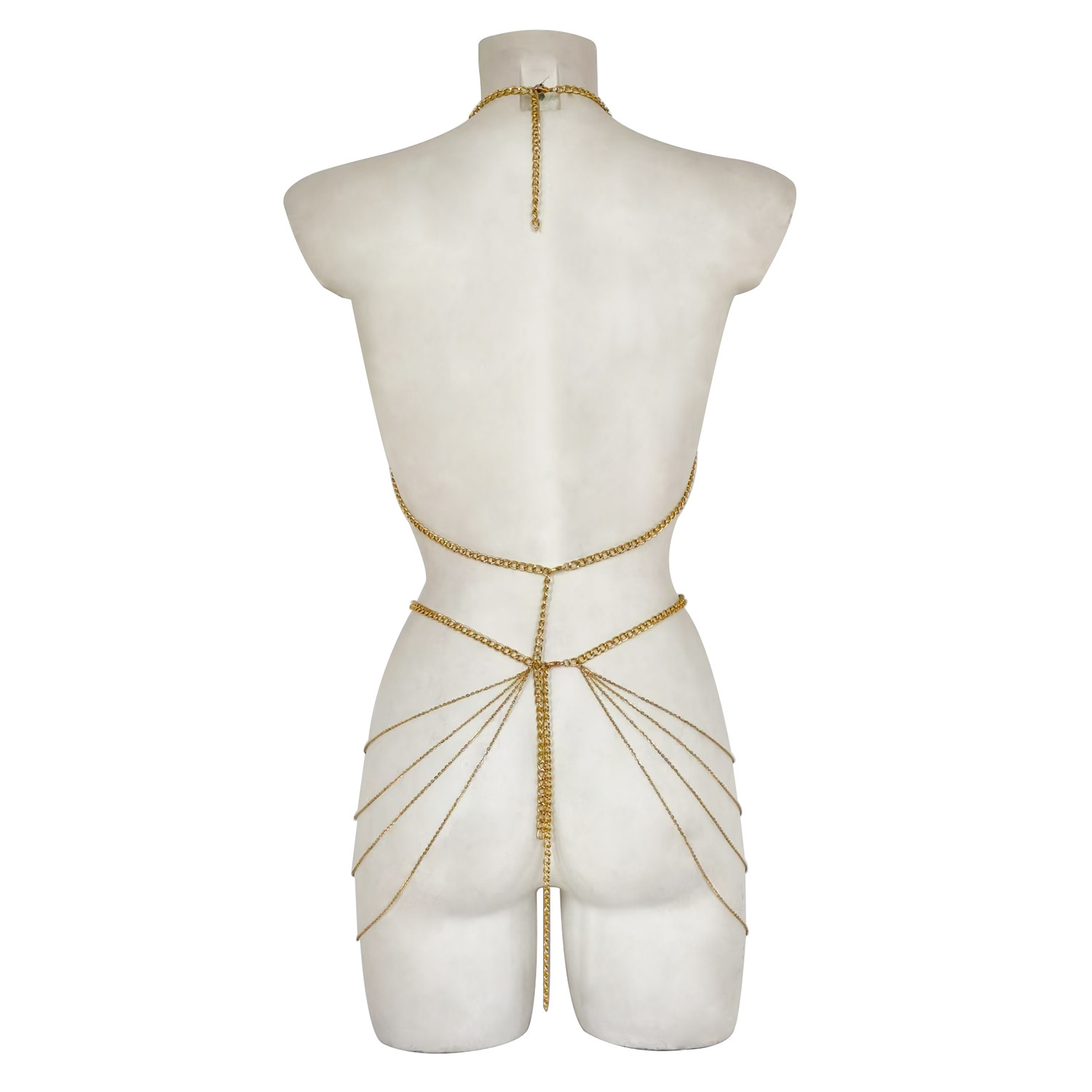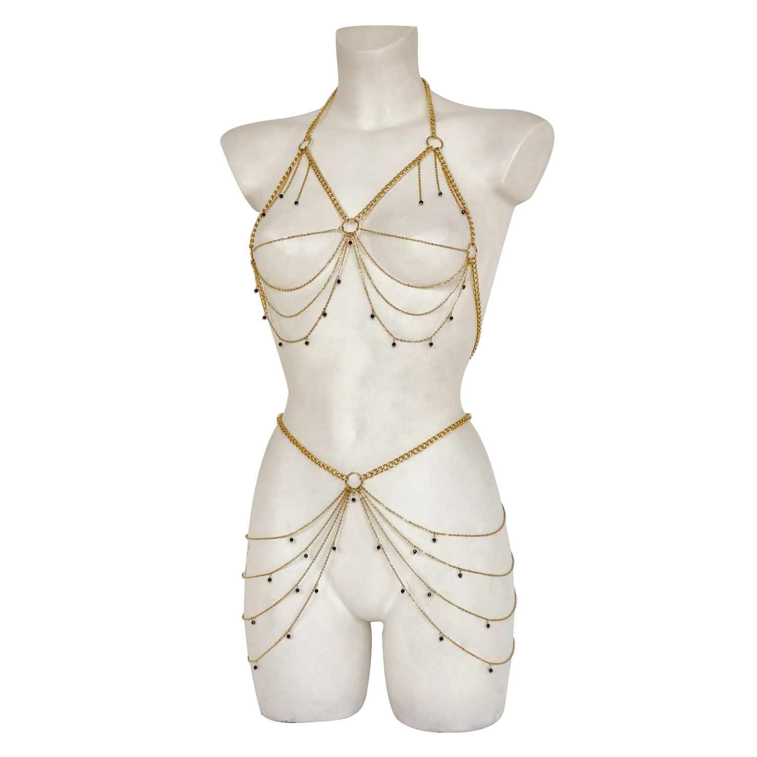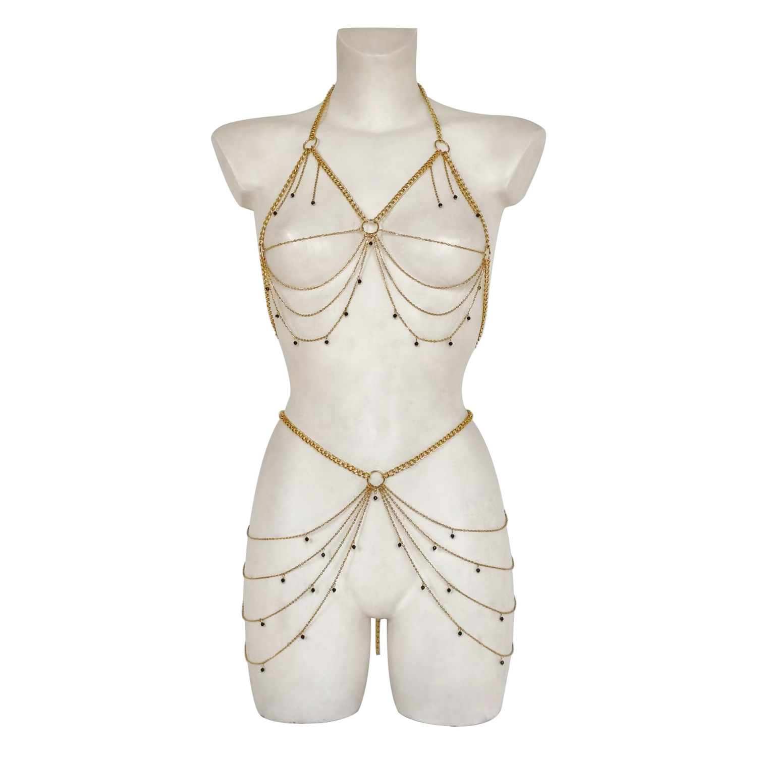 ナイトクラブアクセサリーファッション個性誇張セクシーな胸チェーンホットガールパーティーボディチェーンセット A0015
