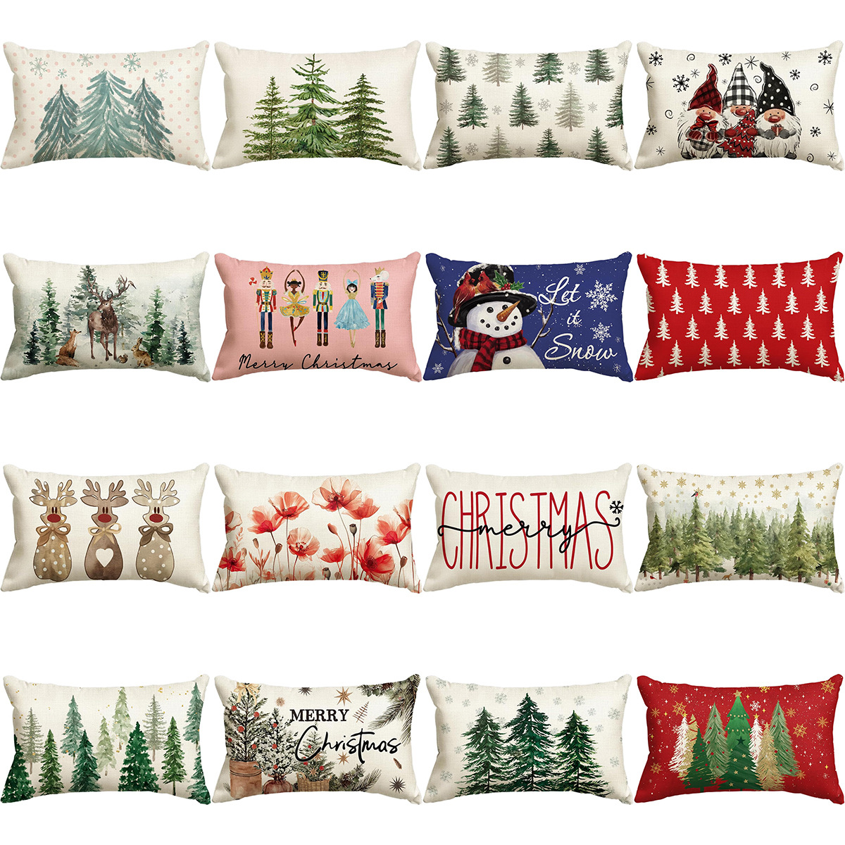 新しいクリスマスプリントクッションカバーソファインクッションクリスマスツリーホリデーホームデコレーション装飾品枕
