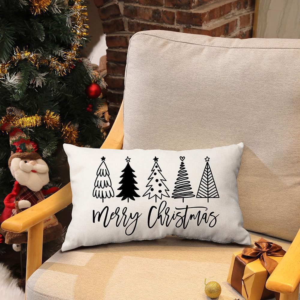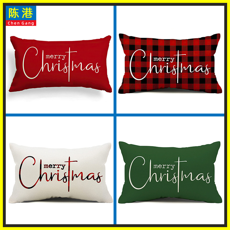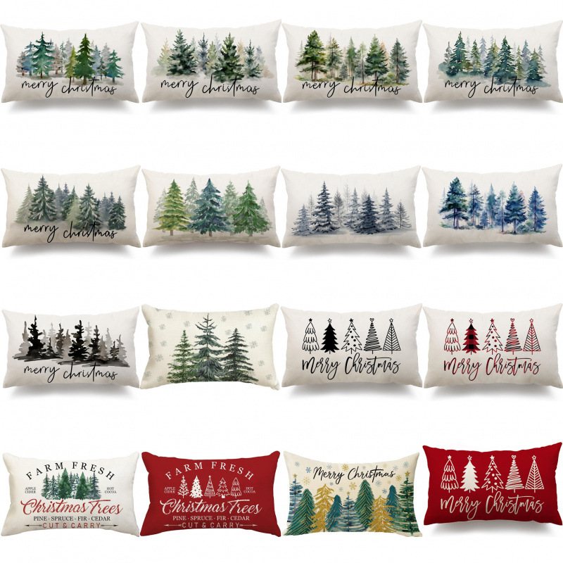 亚马逊希音跨境热卖圣诞树圣诞快乐文字圣诞节亚麻腰枕套抱枕定制