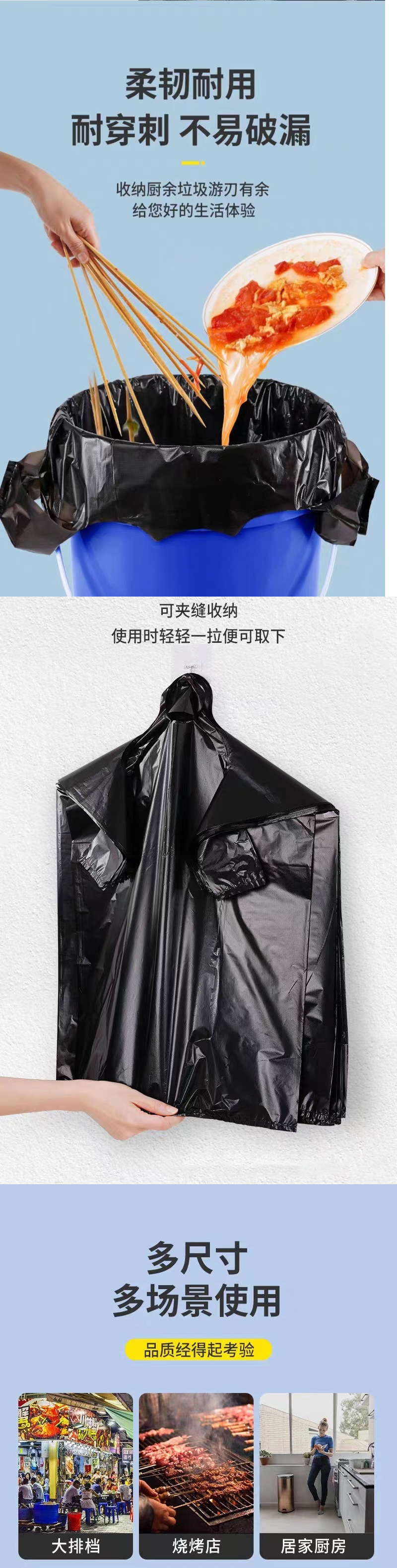 厚みのある黒いゴミ袋、家庭用キッチンポータブルゴミ袋、極厚の家庭寮オフィス大型ゴミ袋