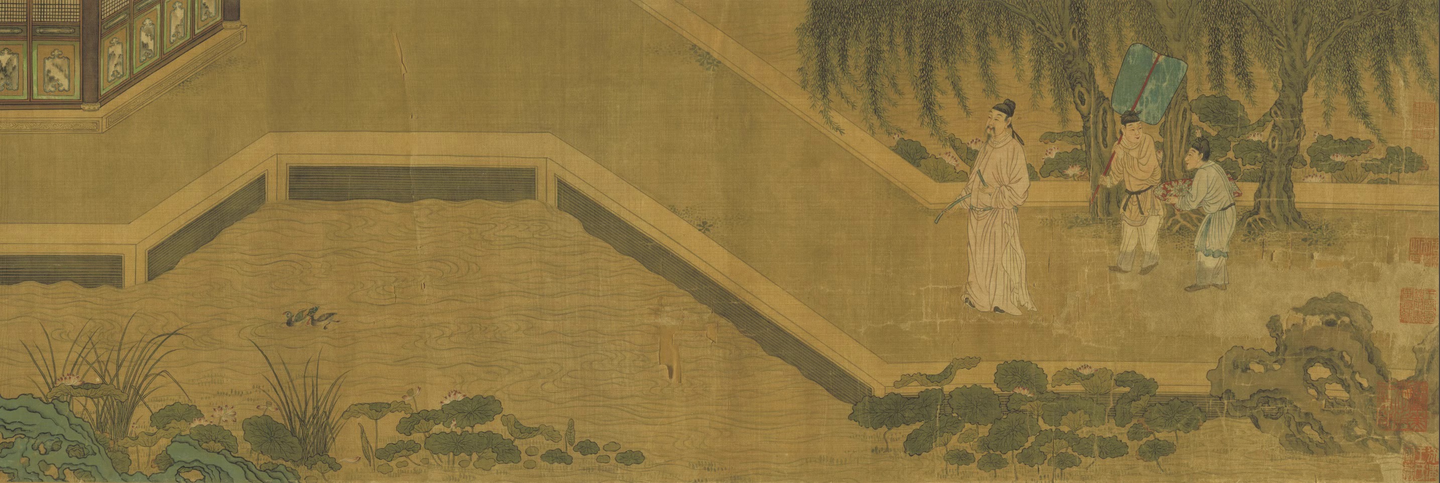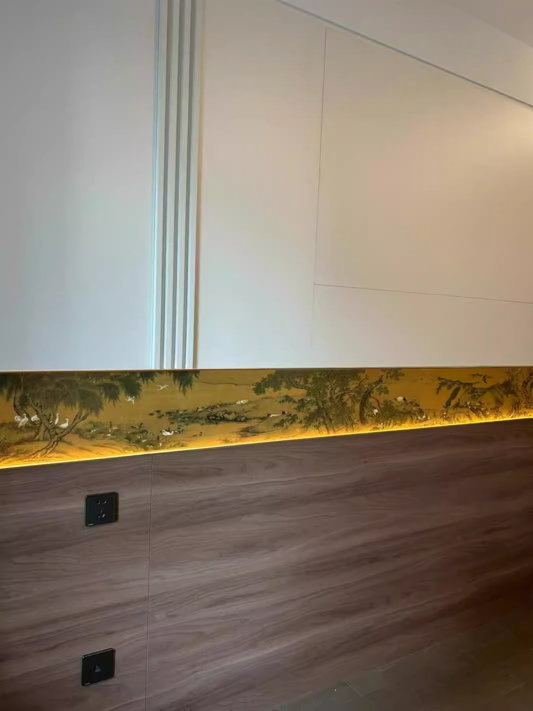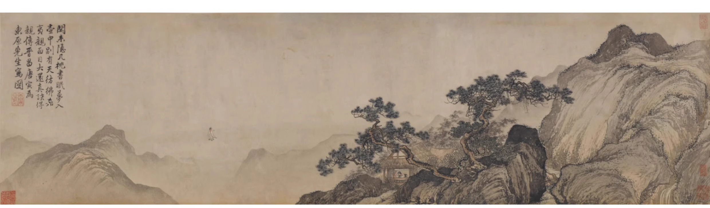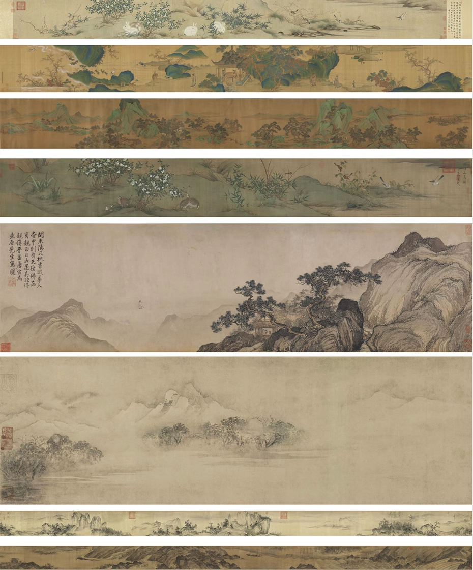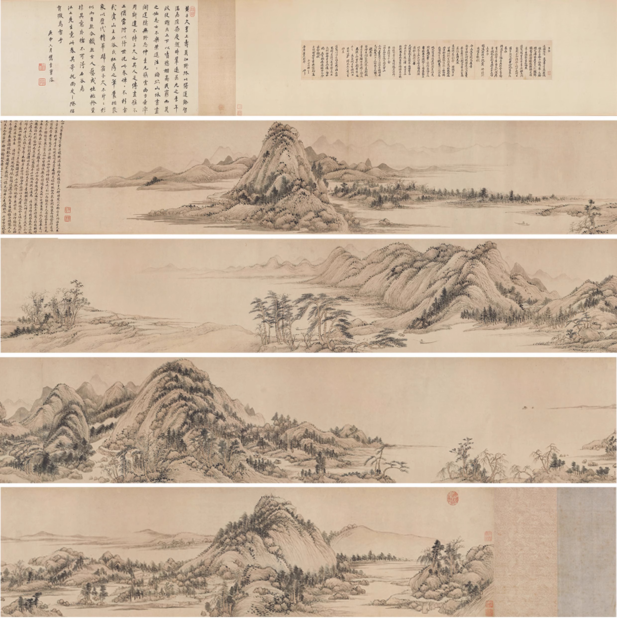 新しい中国古典名画壁紙、休園図、富春山荘図、腰線壁紙、宋風美学、中世風壁装材