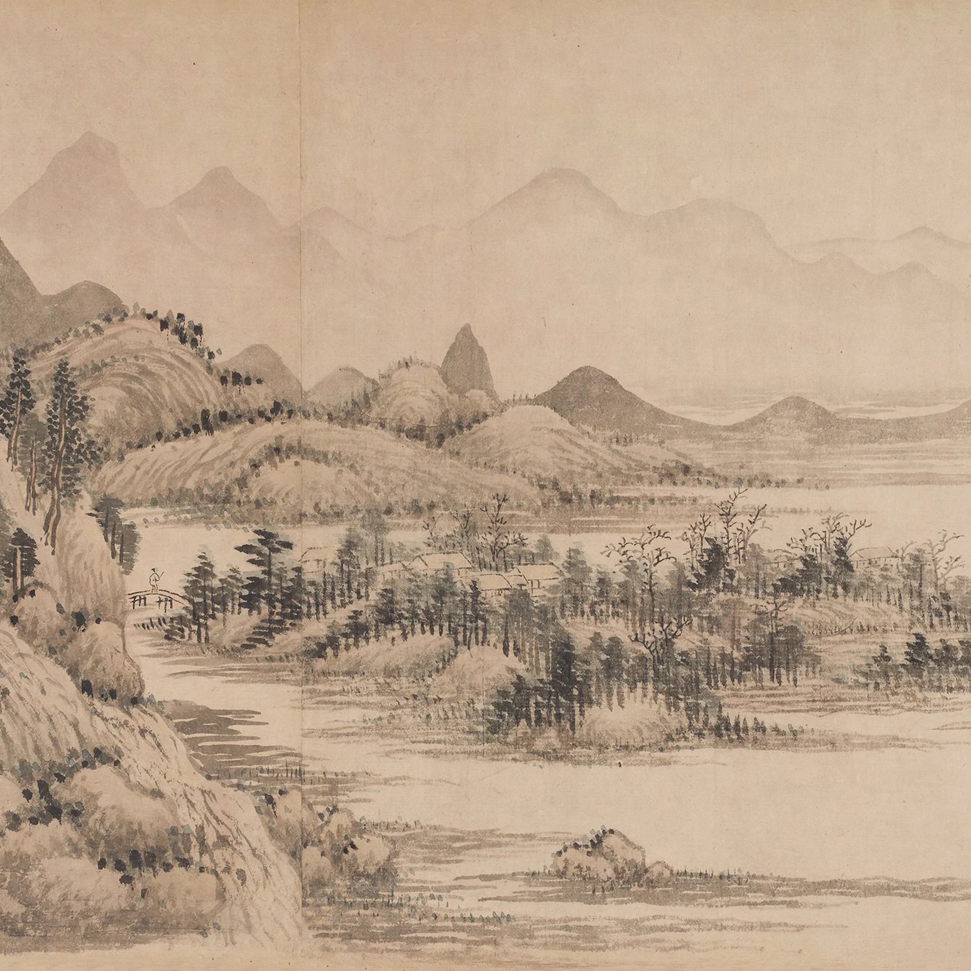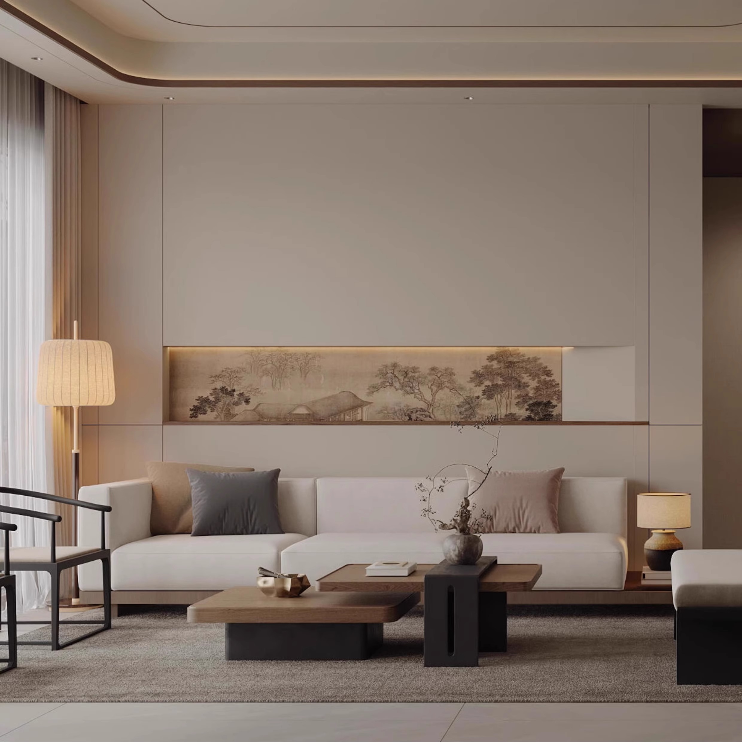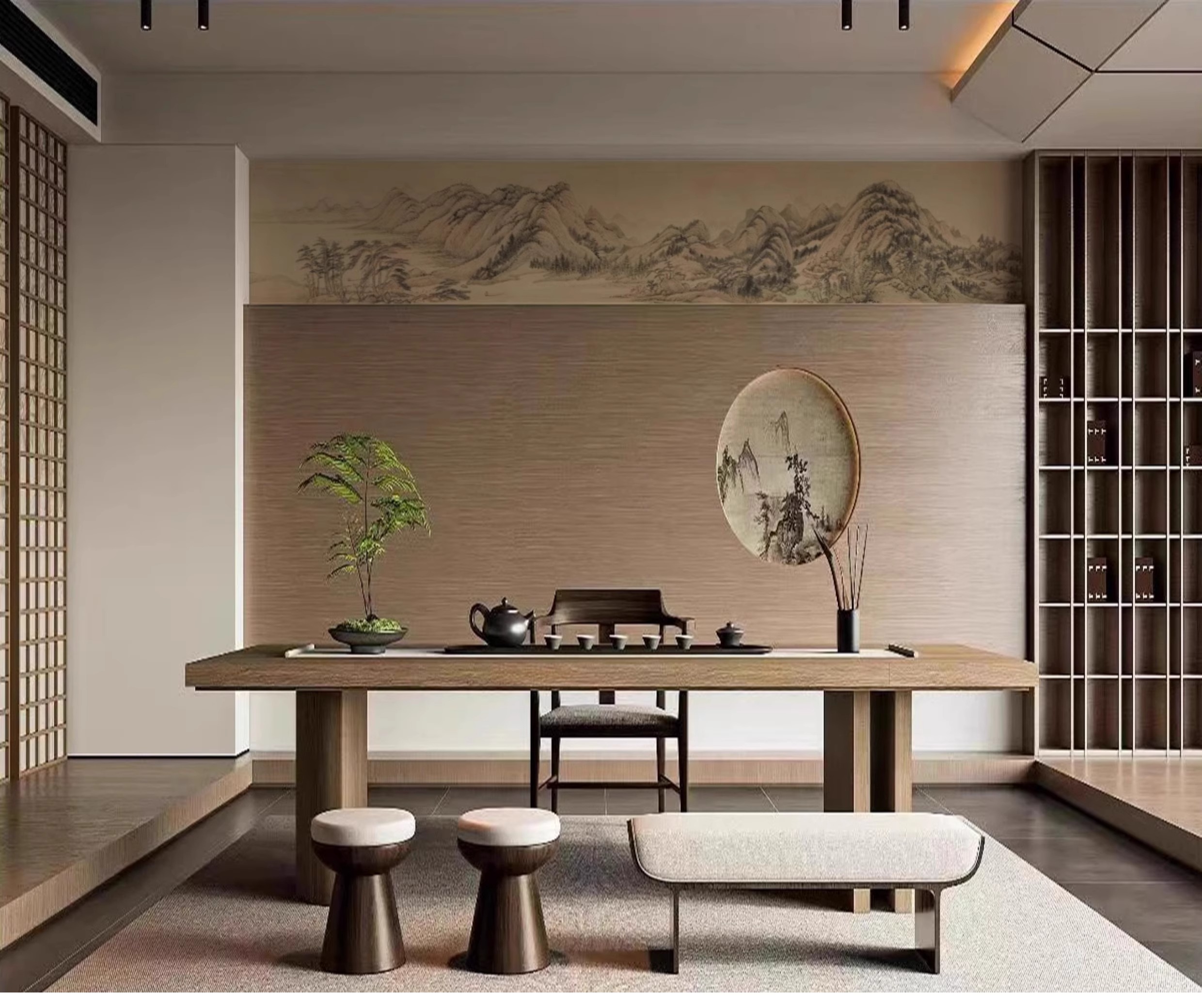宋式美学墙布宋代壁布腰线宋画山水壁画茶室卧室客厅电视背景墙纸