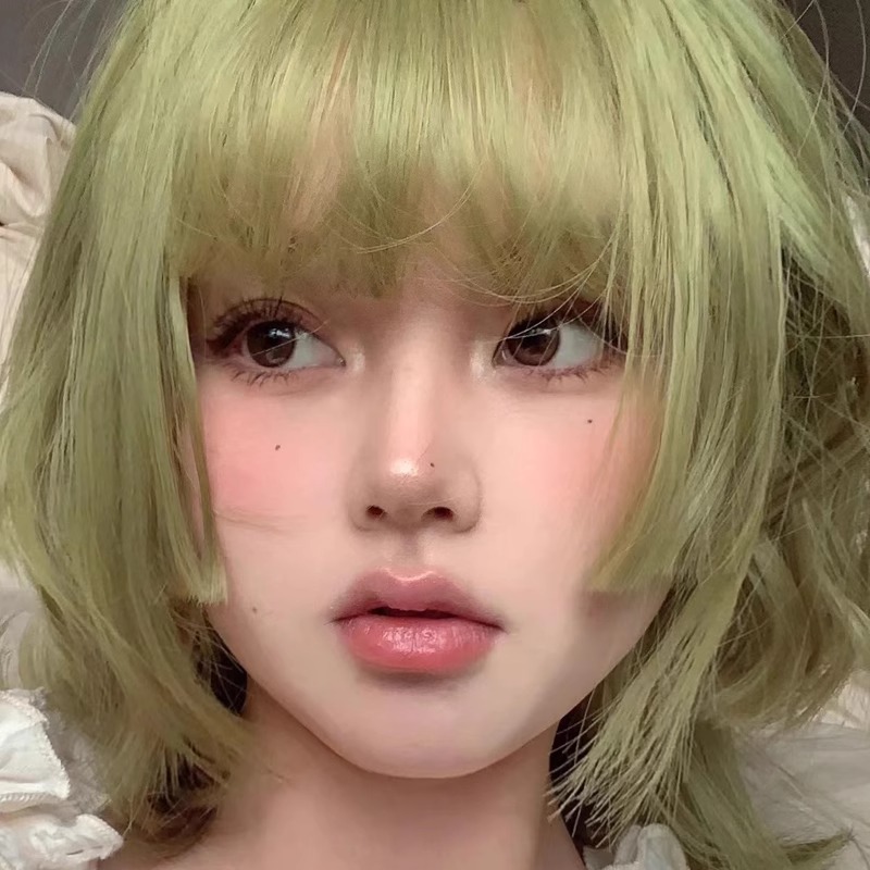 ネットの赤いかつらの女性の中で長い髪のショートヘアの漫画の前髪の王女は蛍光の緑を切ってふわふわしています。