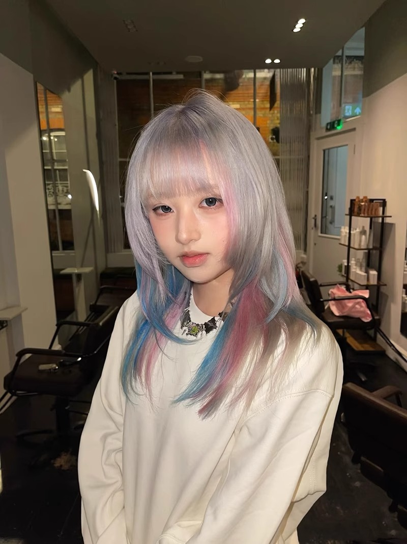 かつらの女性ユニコーンのピンクの青いグラデーションの鎖骨はy2kネットの赤い亜の文化の高レベルの短いストレートの全頭カバーを出します。