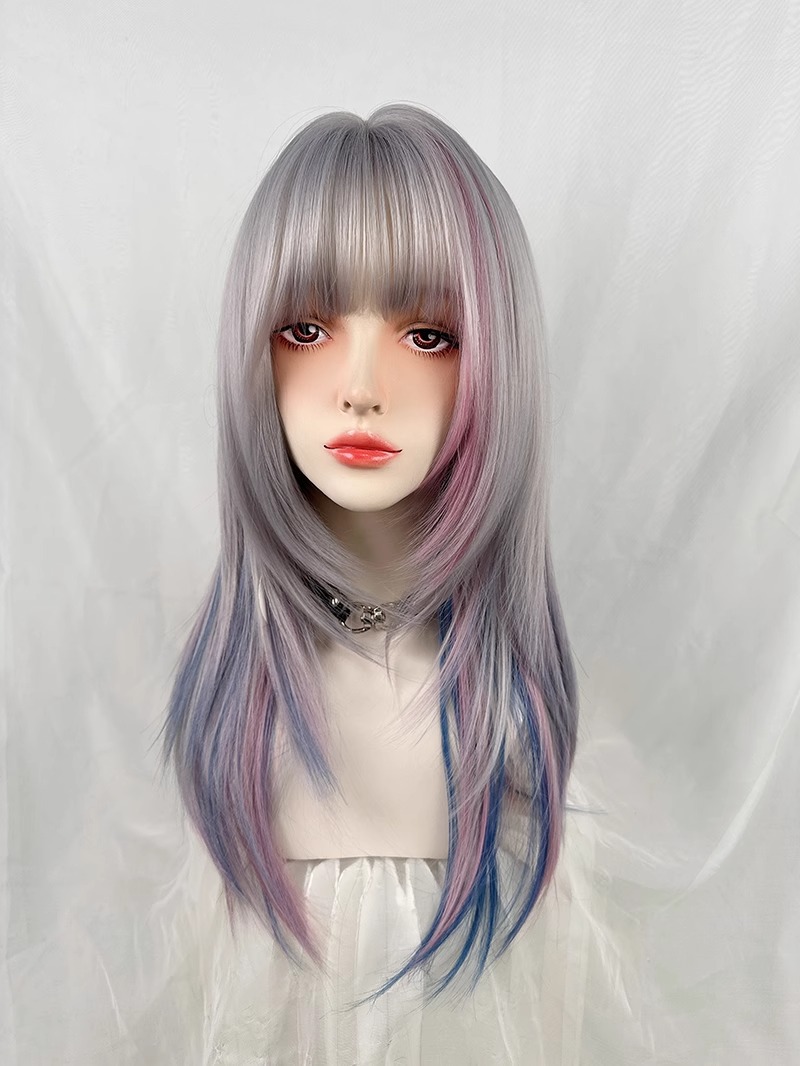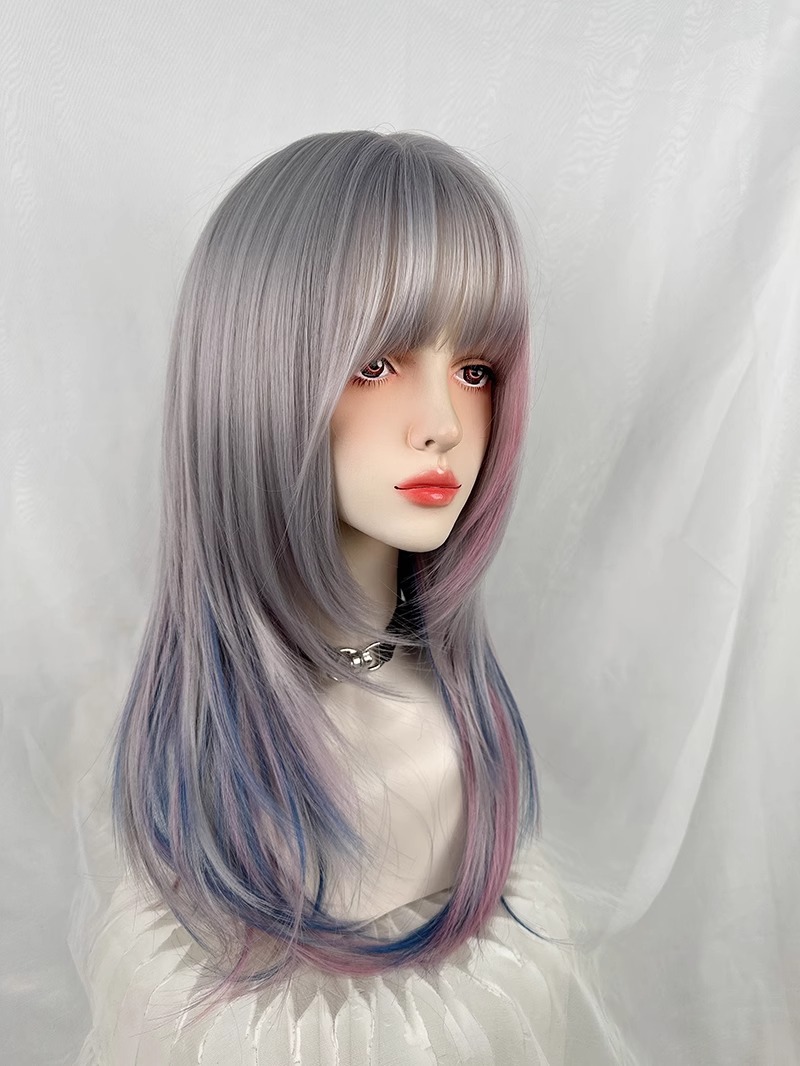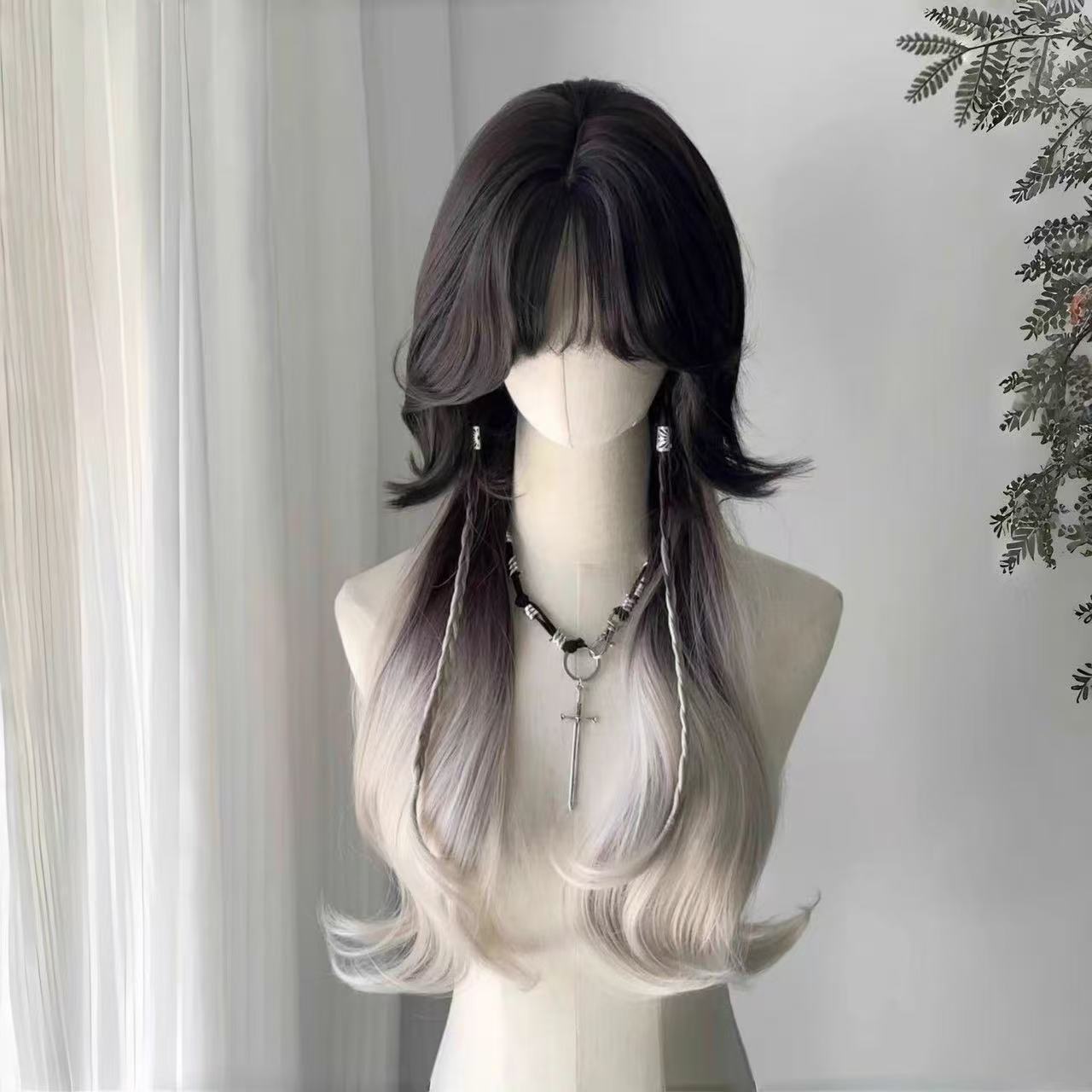 かつらの女性の長髪の高レベルJKグレーの全頭カバーlolita鎖骨髪の長いストレートヘアy2kがふわふわしている