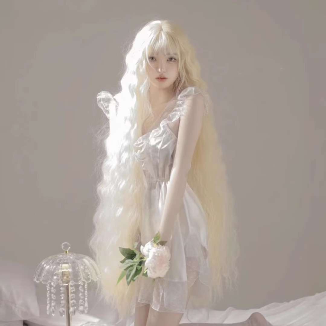 白い金色のかつらの女性の長い髪のネットの赤いlolitaの大きい波の長い髪の毛のかつらのカバーjkは全真人の全体のカバーをまねます。