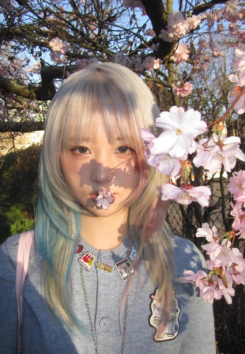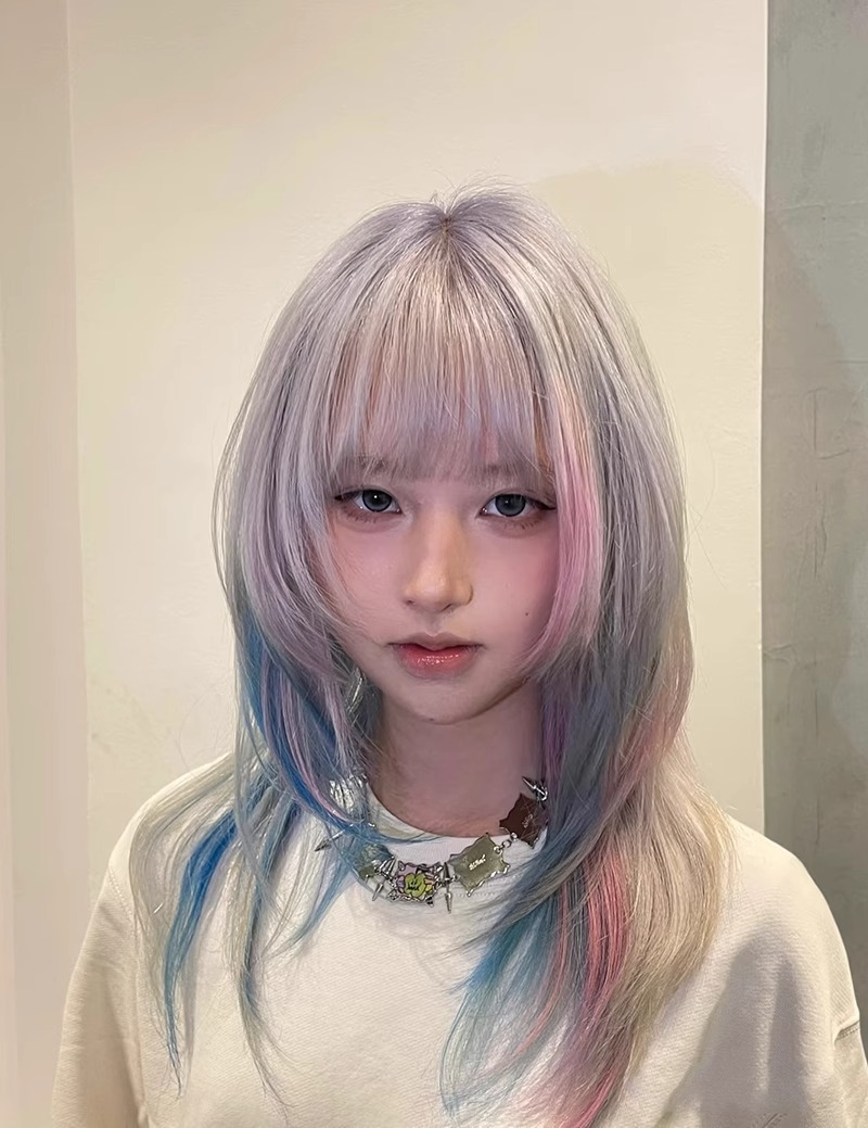【カラークリーム】虹色の中で長いカールの気質が現れています。