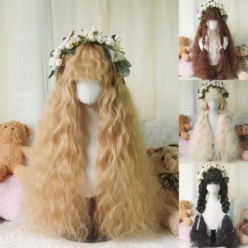 かつらレディースLolita森系田园ウール巻きリネンゴールドブラックブラウン万用80cm巻き前髪ヘアセット