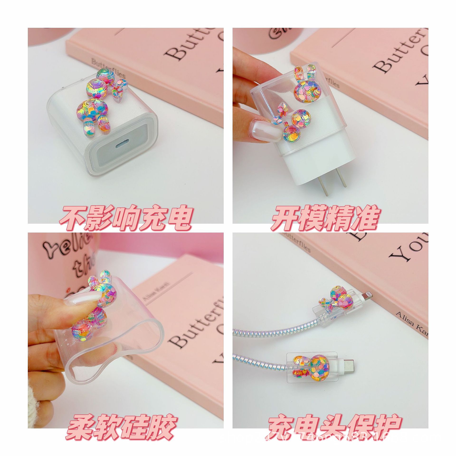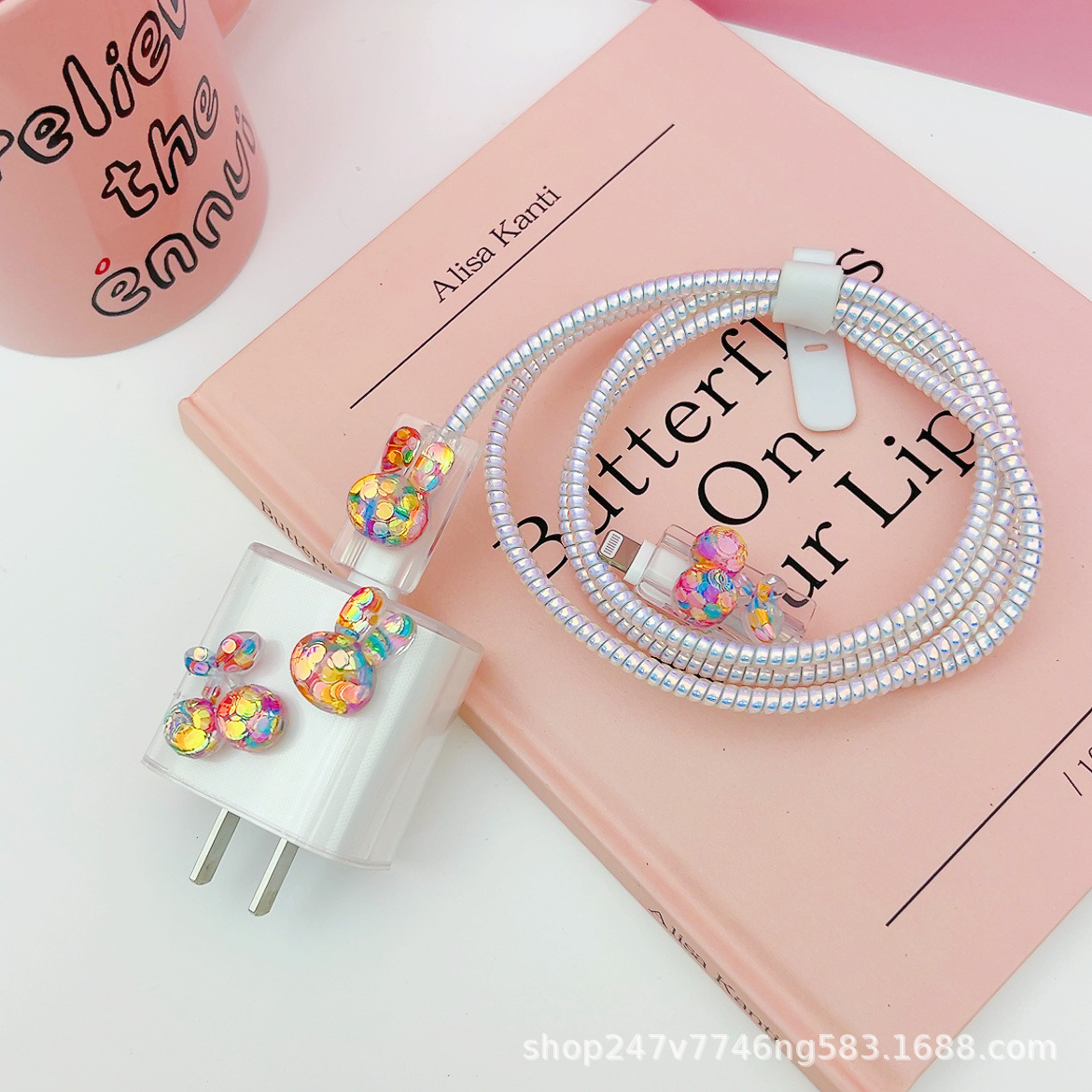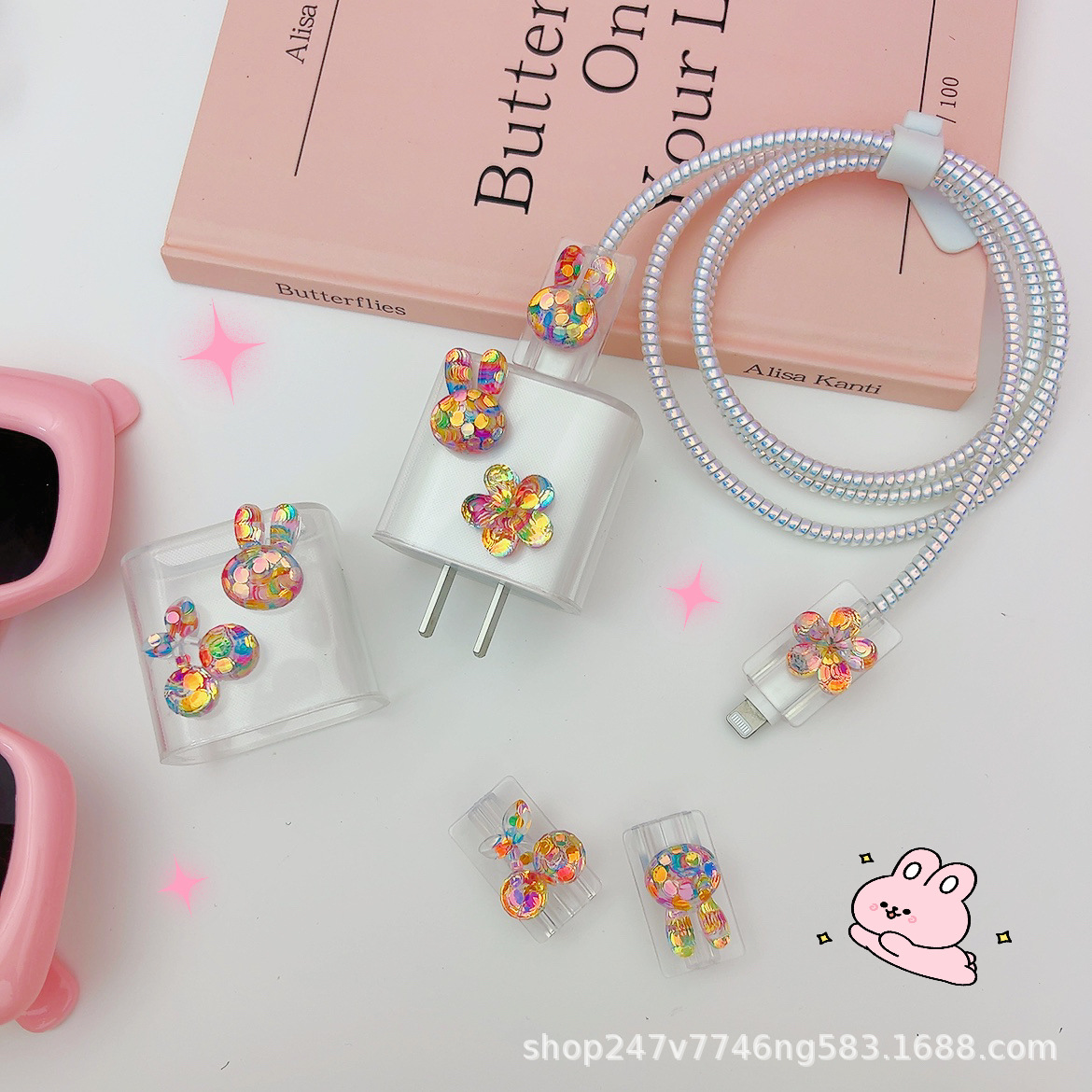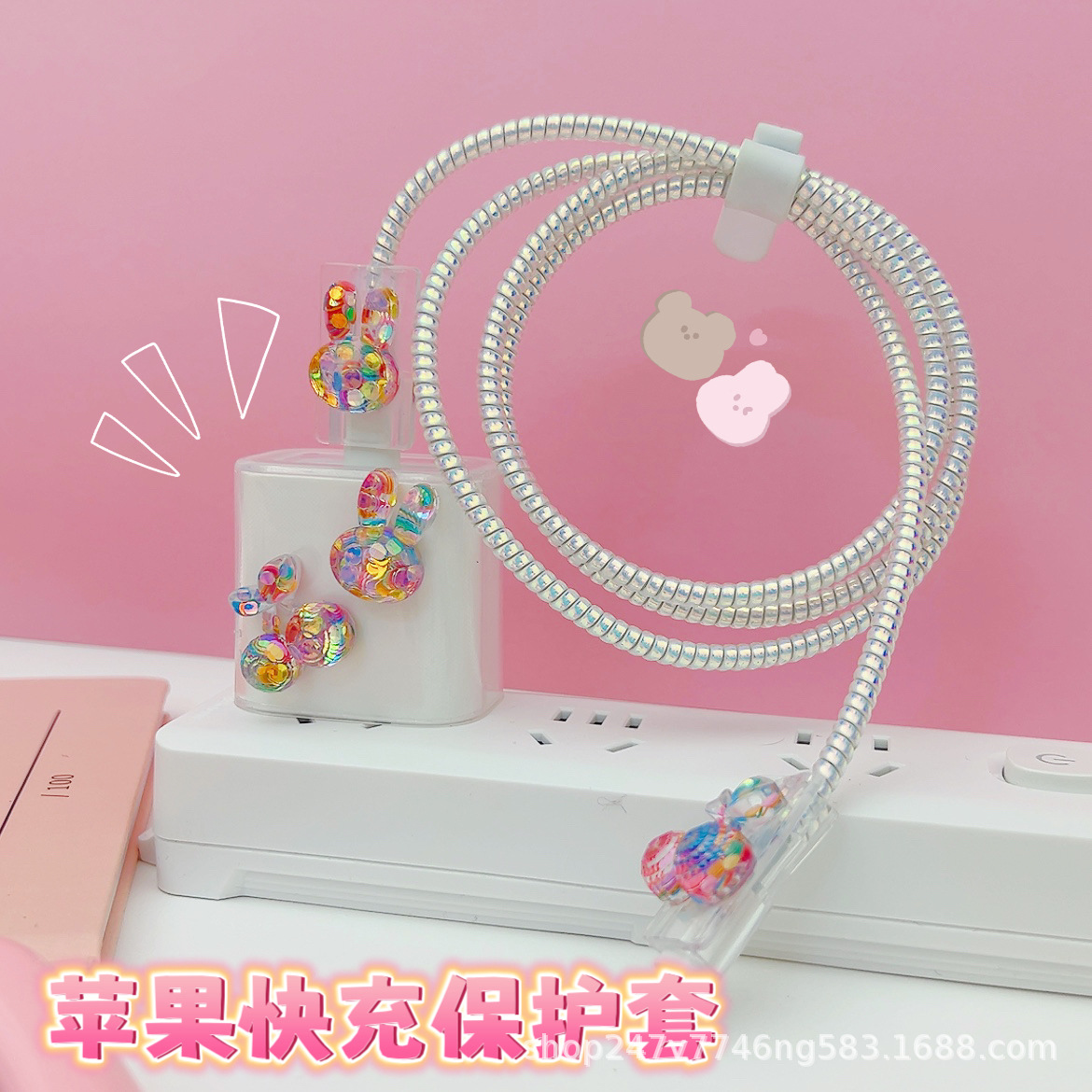 Apple Cherry Rabbit スパンコール 16pro/1514 データケーブル保護カバーケーブルワインダーロープ充電器ソフトシェルに適しています。
