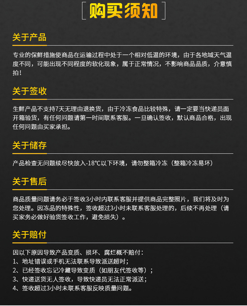 感谢亲亲的信任,由于食品类目的特殊性,为了食品安全着想,产品不支持7天无理由退换货,特别是冷冻食品,不支持拒签和退换货,希望大家能够理解,谢谢了!!!!