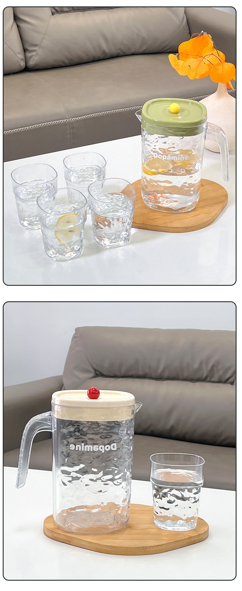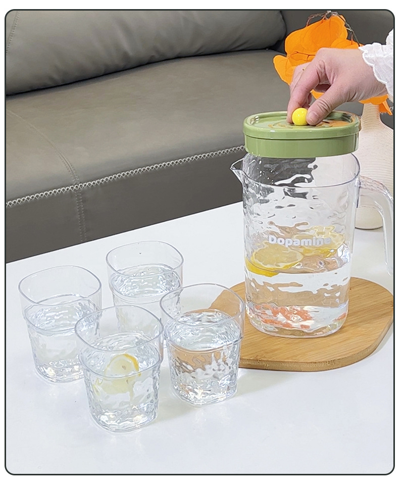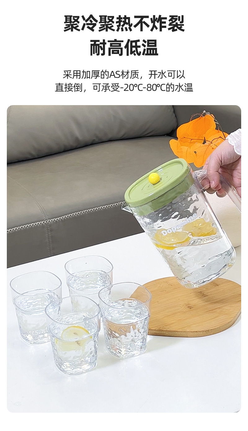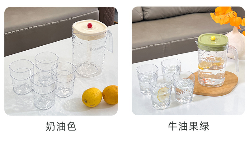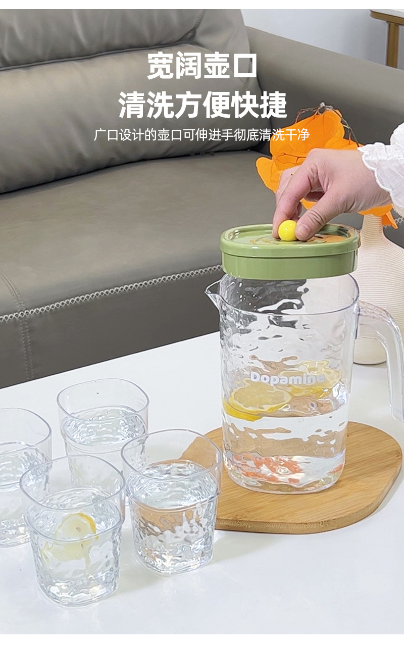 シンプルな家庭用冷水ポットプラスチック大容量冷水ポット耐高温透明カップセット冷蔵庫ジュースポット
