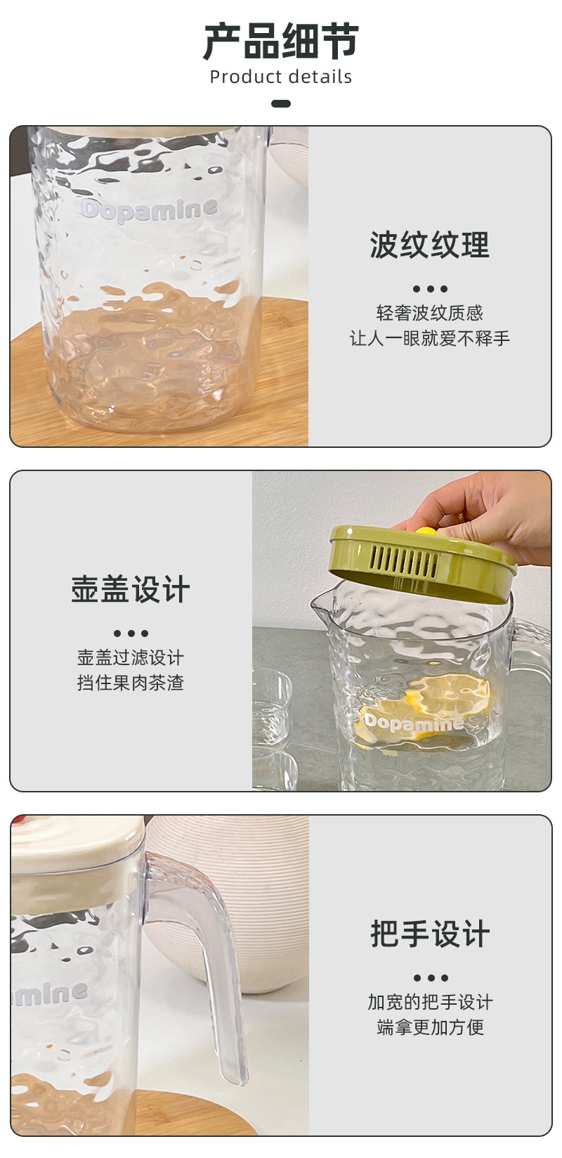 25年新型冷水ポット家庭用高颜値耐冷耐熱2l大容量水波紋冷水カップ冷水ポット