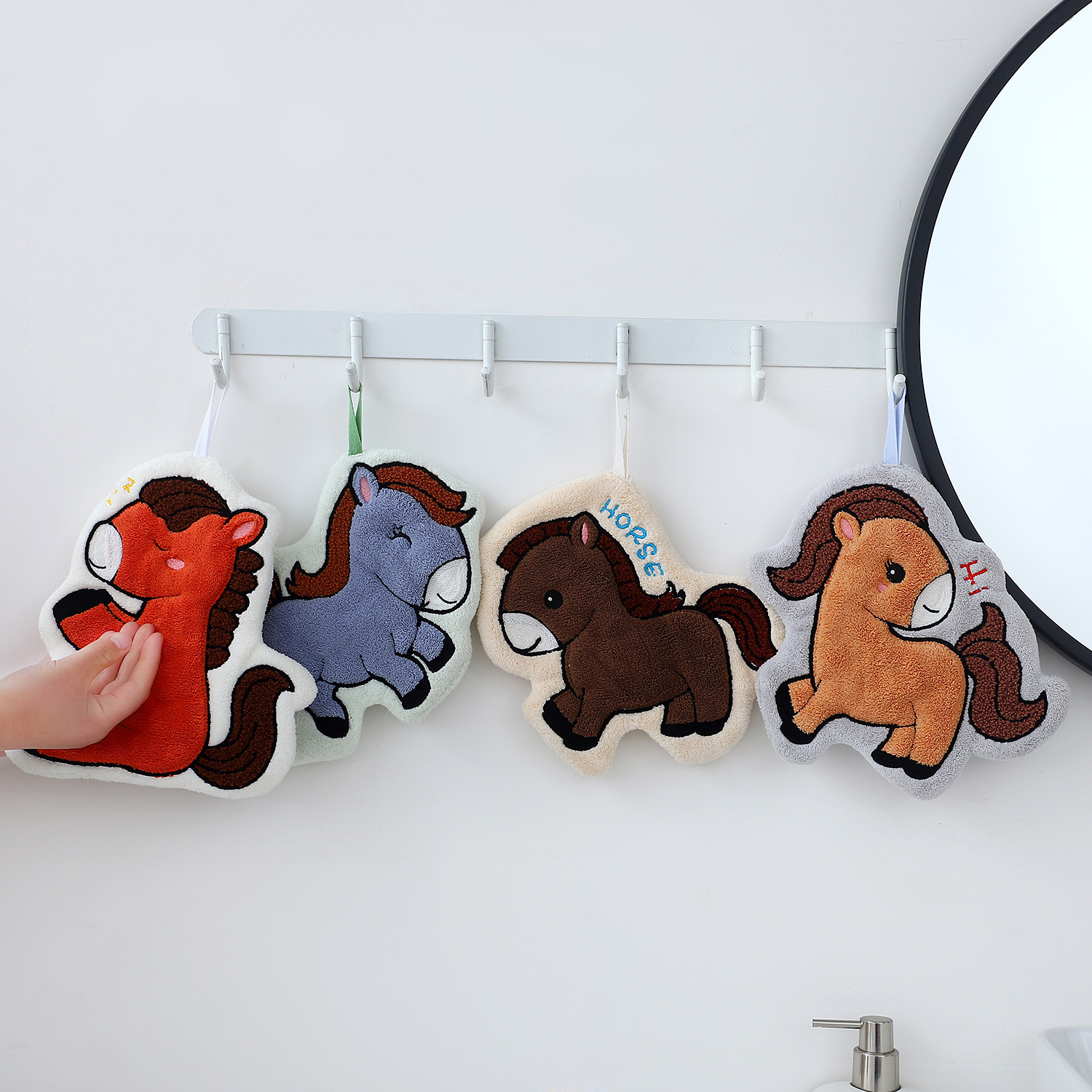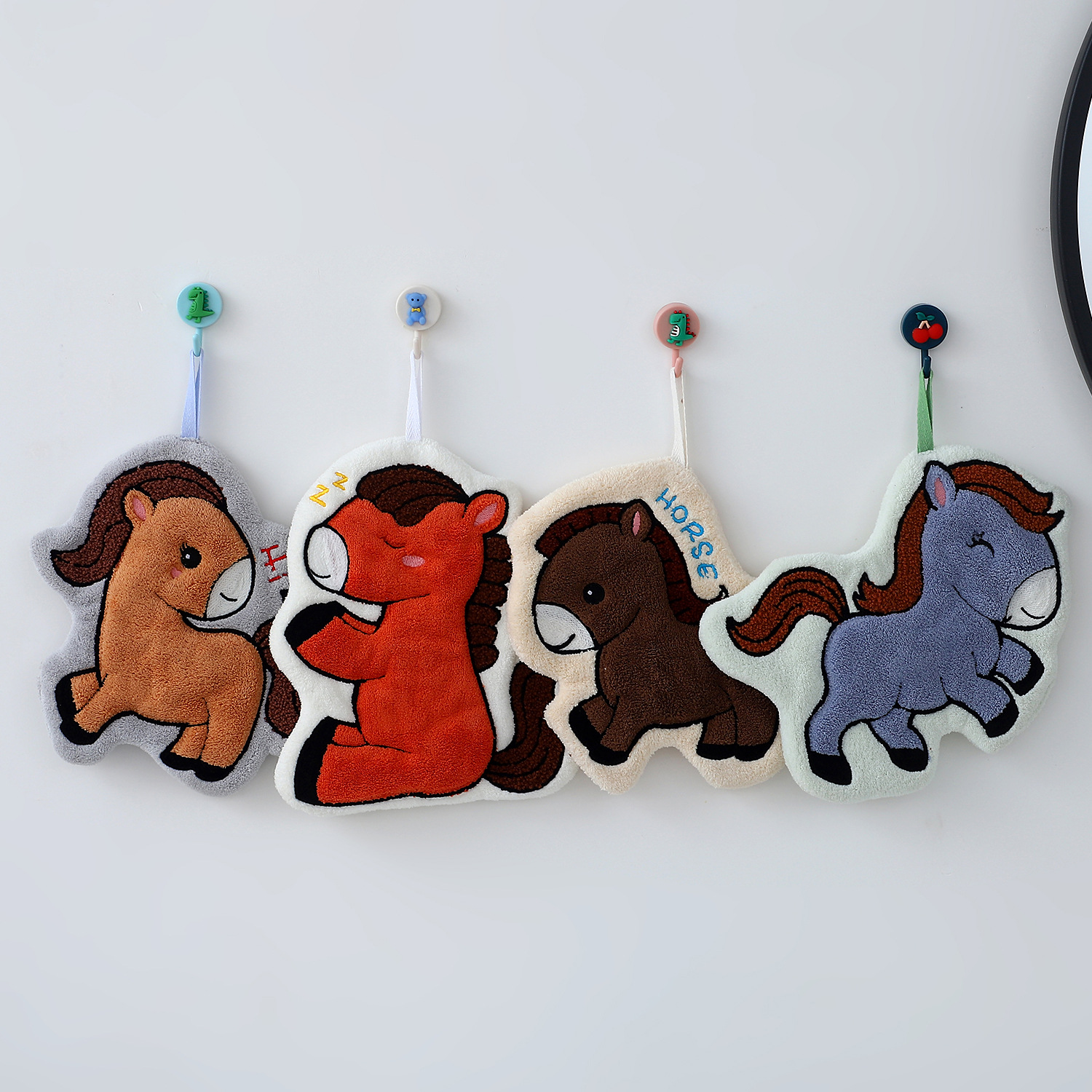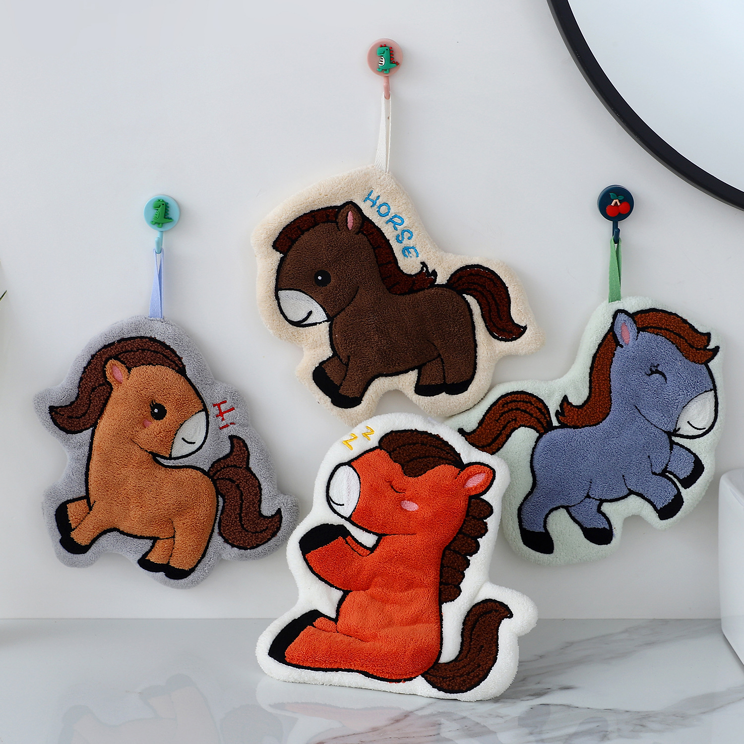 国境を越えて利用可能な漫画のポニーのハンドタオル、コーラルベルベット、家庭用キッチンとバスルーム用の厚みのある吊り下げ可能な吸収性タオル