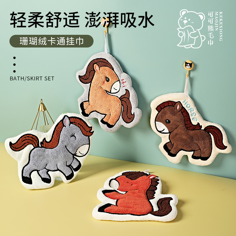 漫画のポニーのタオルサンゴのベルベット家庭用キッチンのタオルトイレは、吊り式吸水タオルを厚くすることができます