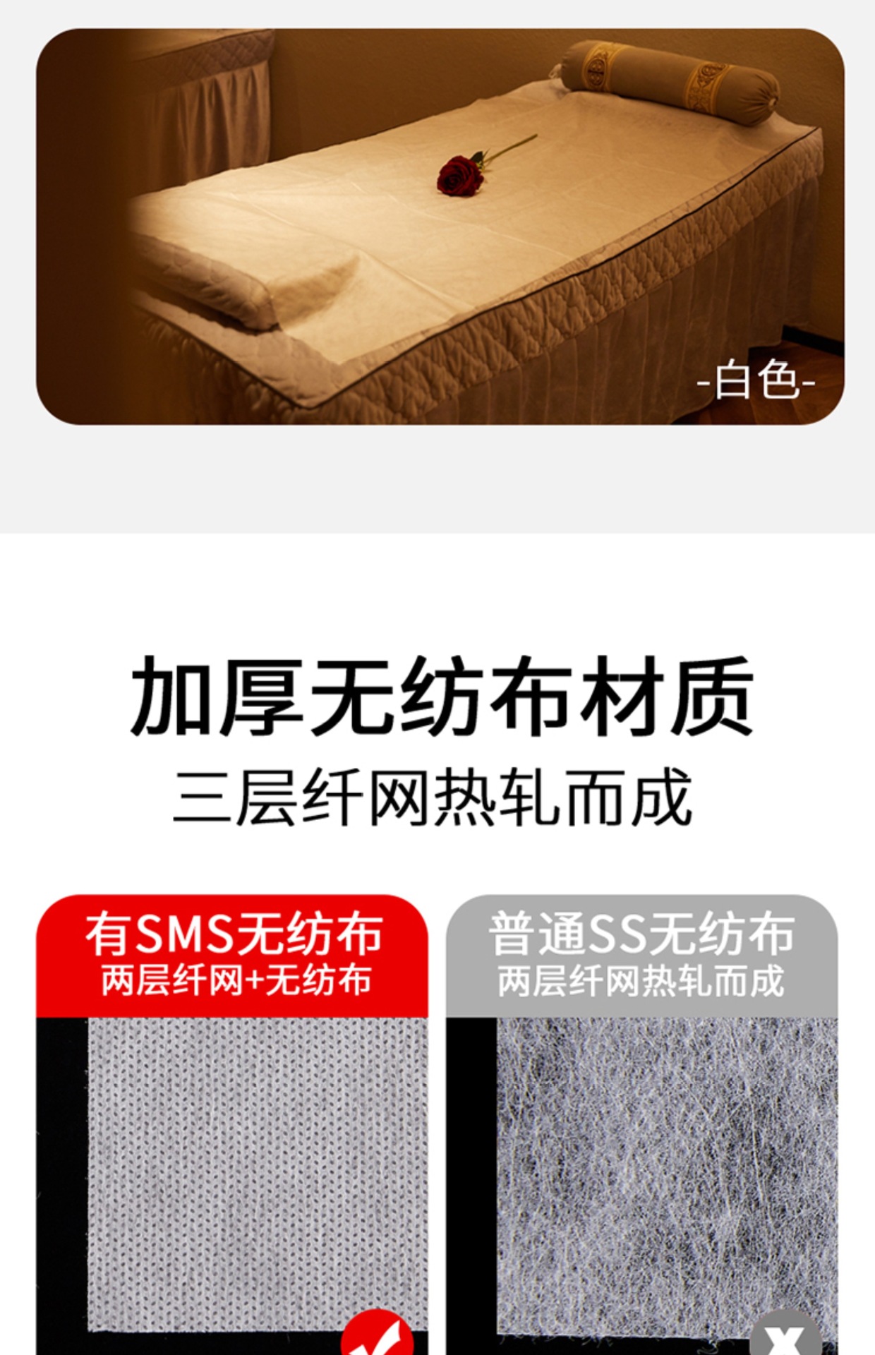 油防止付き厚手不織布マッサージベッド10枚、美容専用使い捨てシーツ10枚、通気性・防水性のある穴付き