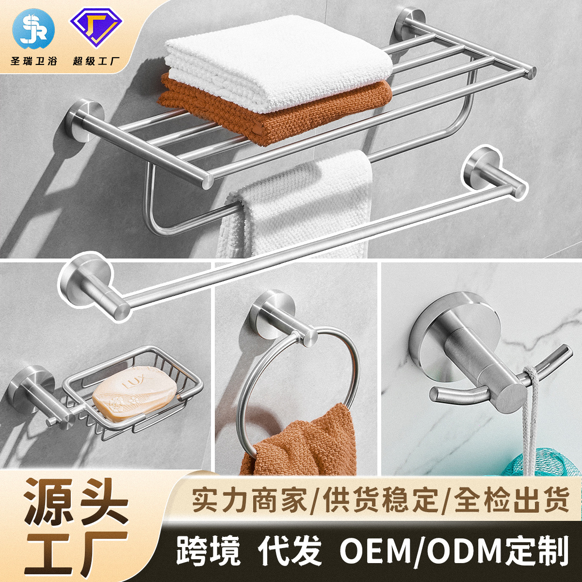 304ステンレス製タオル掛けブラッシュ仕上げセット浴室収納ラック洗面所トイレ金物タオル掛け越境
