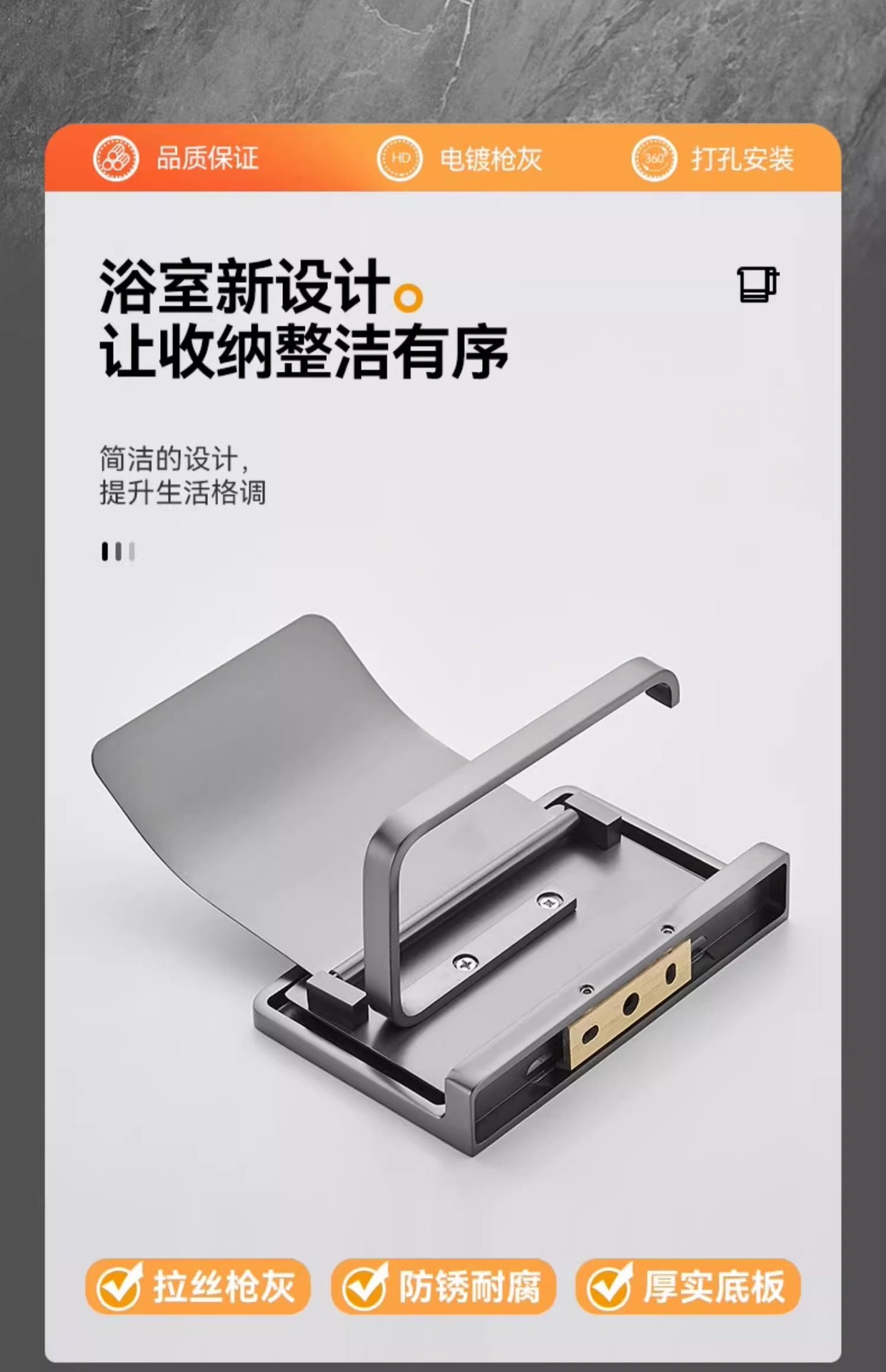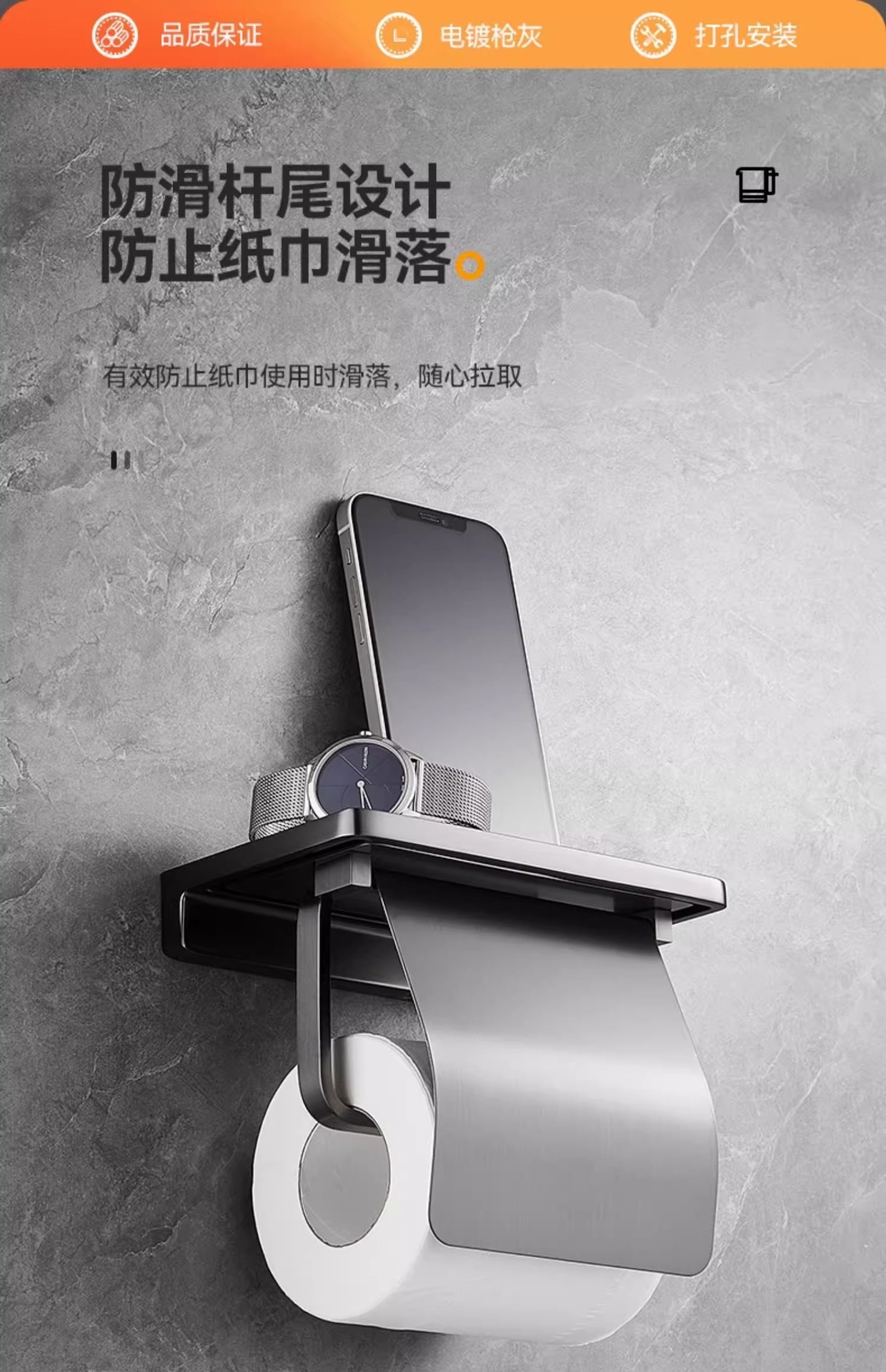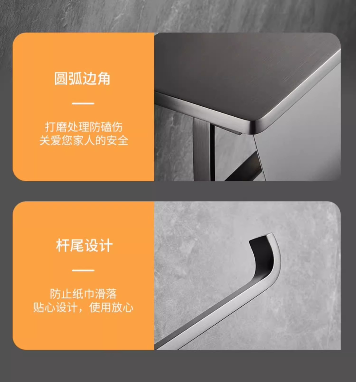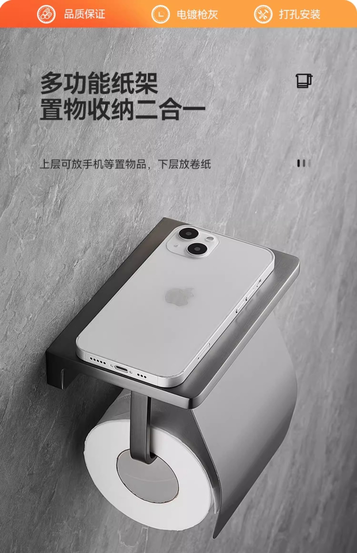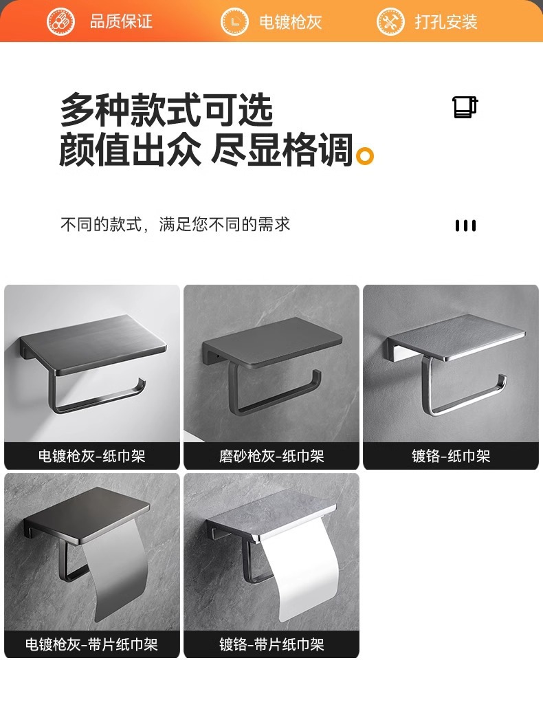 伸線銃グレー304ステンレスペーパータオル棚穴なしトイレ置物ロール紙棚ティッシュ箱トイレットペーパー棚