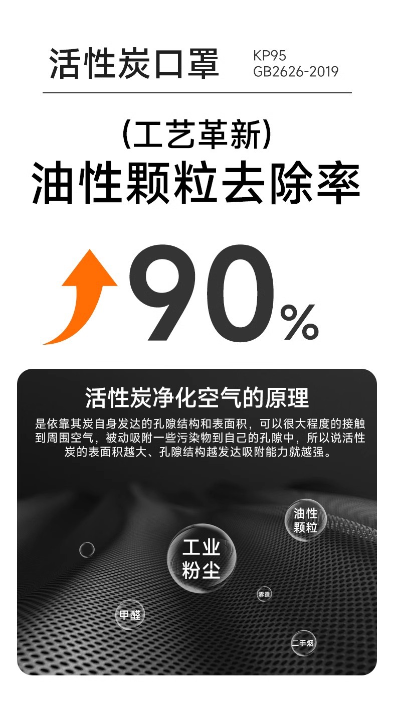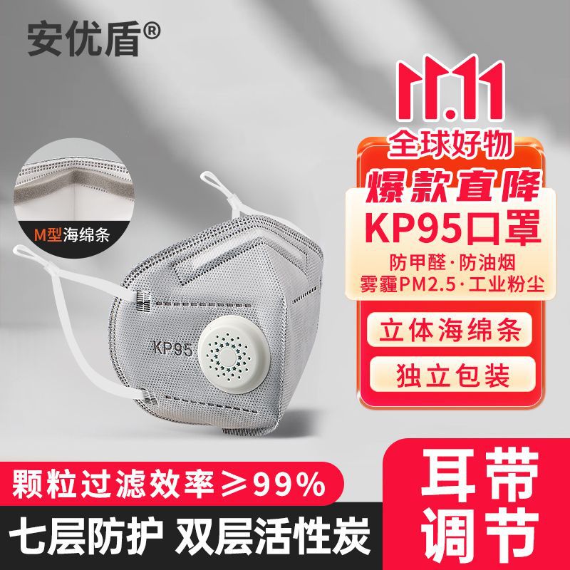 KP95マスク二重活性炭防油煙ホルムアルデヒド中古煙溶接煙防塵工業粉塵FFP2呼吸弁