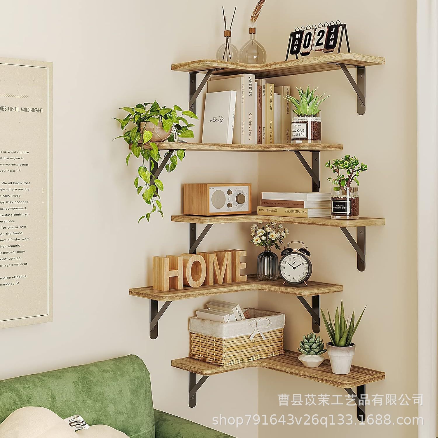 カントリースタイルの木製壁棚壁掛けフローティングパーティション無垢材コーナー収納ラック雑貨整理