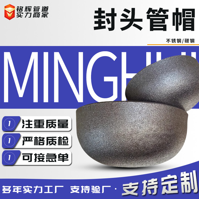 碳钢焊接封头国标316L管帽对焊平堵头半圆形304管帽封头压力封头
