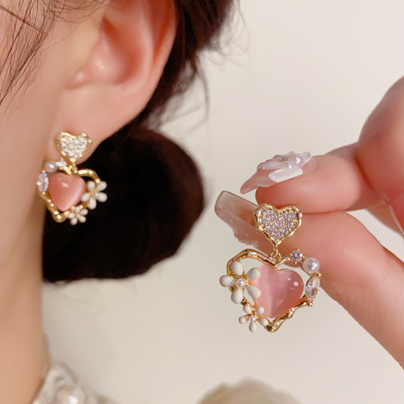 S925銀針ファッションデザイン感花ピンク愛イヤリング女性気質甘美で贅沢なイヤリング卸売り