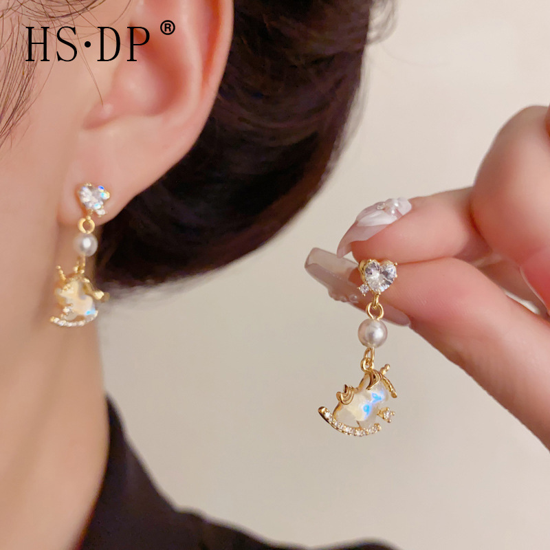 法式时尚甜美个性百搭镶钻爱心珍珠独角兽耳坠精致轻奢设计感耳环