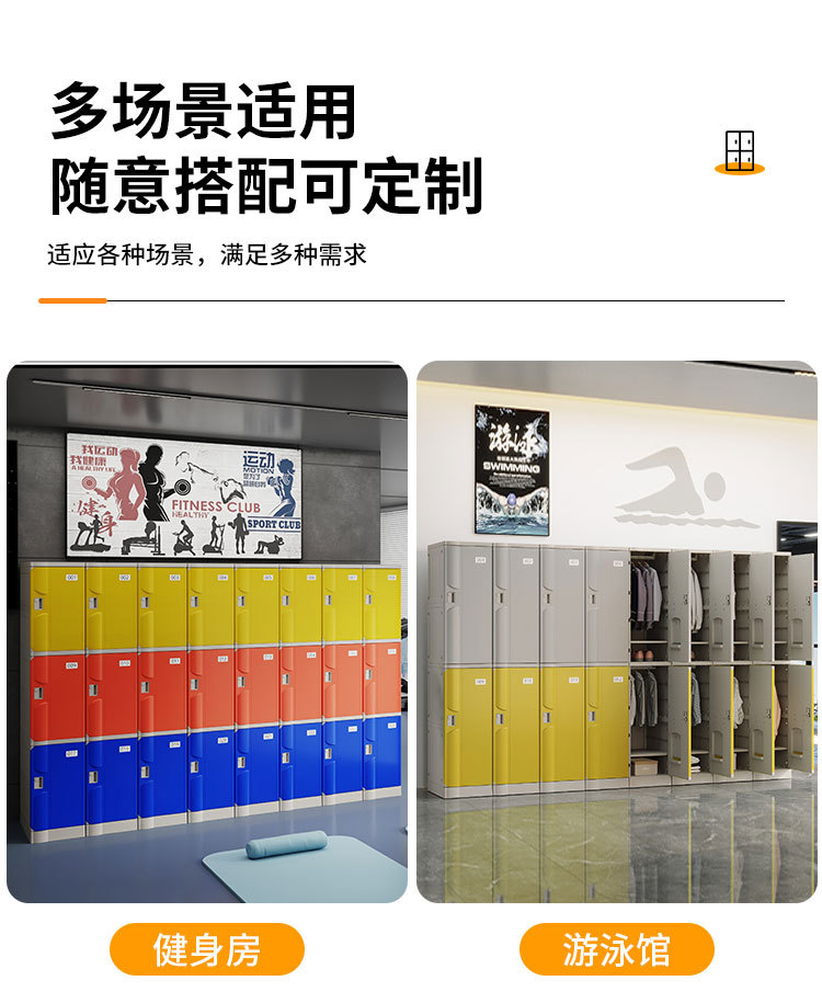 abs塑料员工更衣柜带锁健身房储物柜工厂浴室澡堂游泳馆防水衣柜
