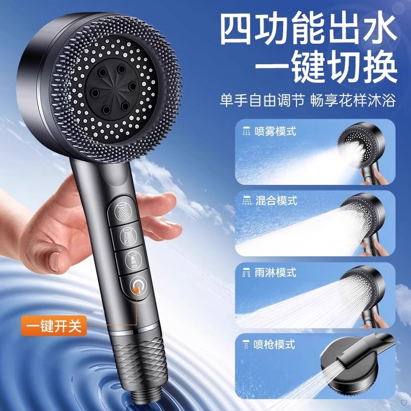 跨境增压花洒家用热水器淋浴莲蓬头专利款按键四档手持喷头套装