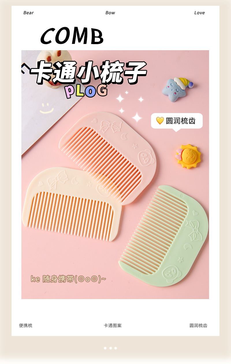 コームインプラスチッククマ学生前髪理髪コームポータブルミニかわいい漫画コーム