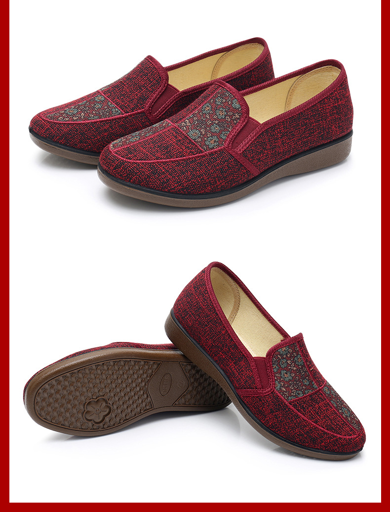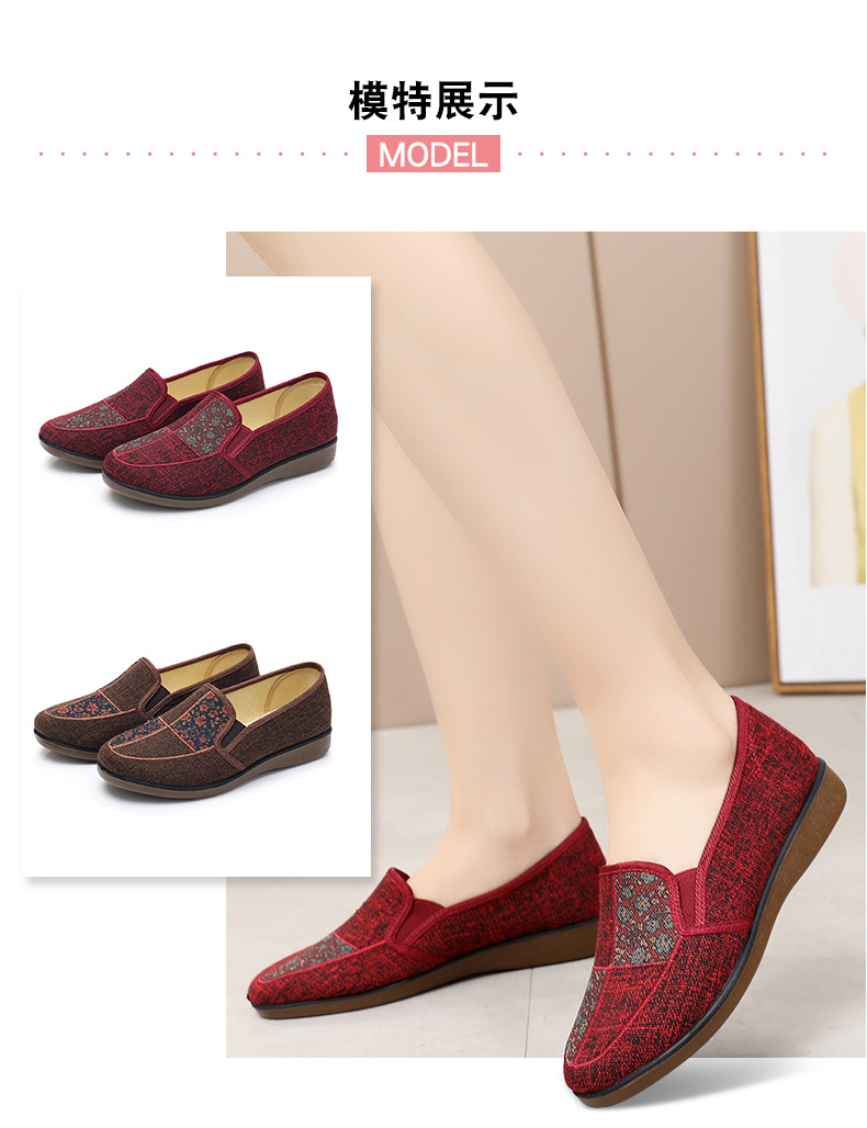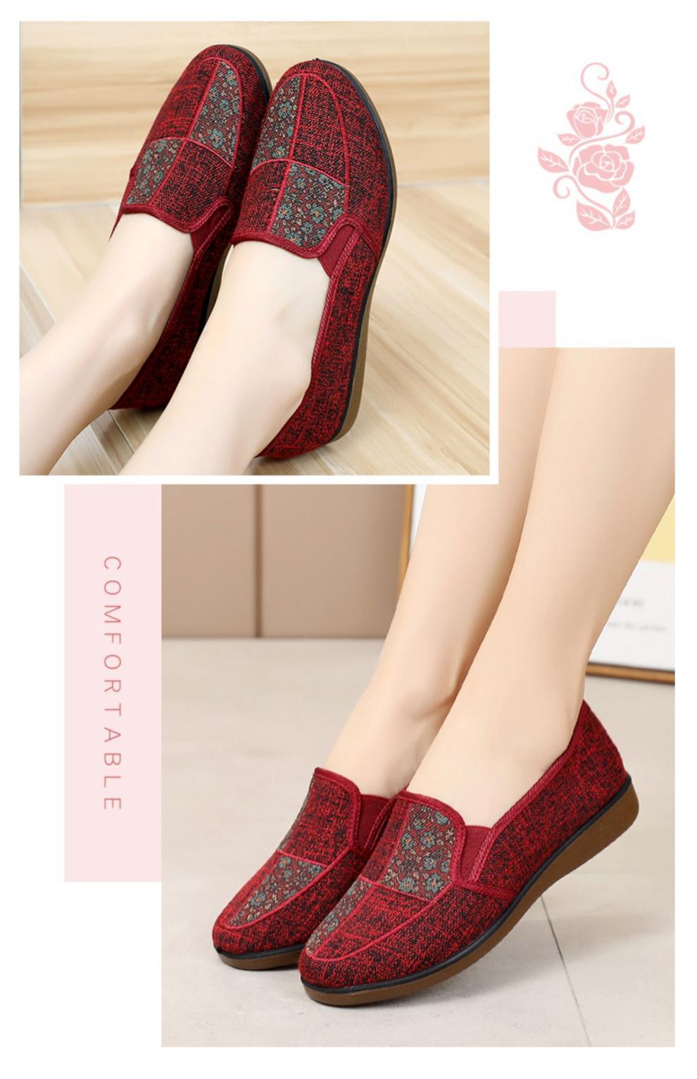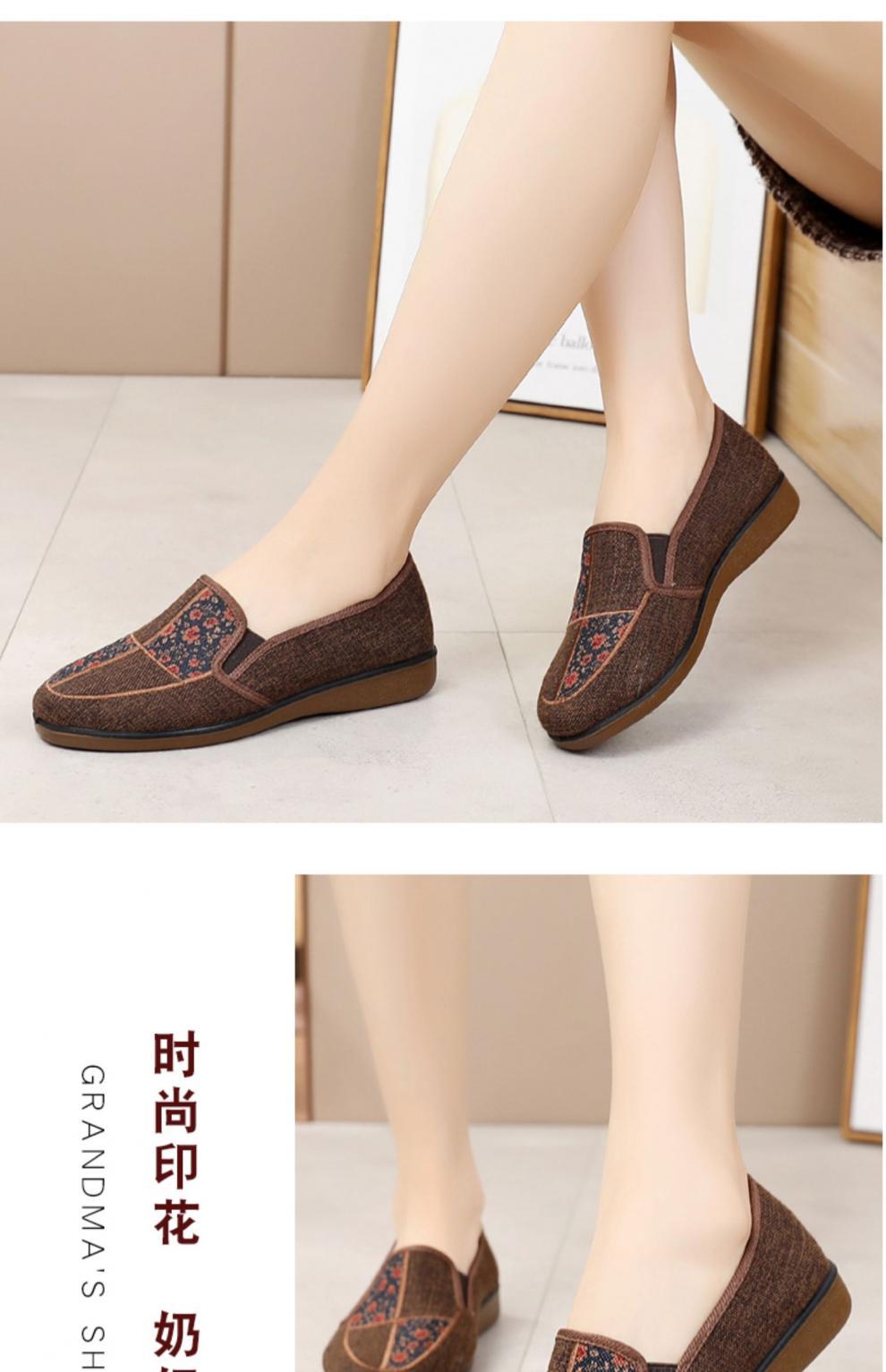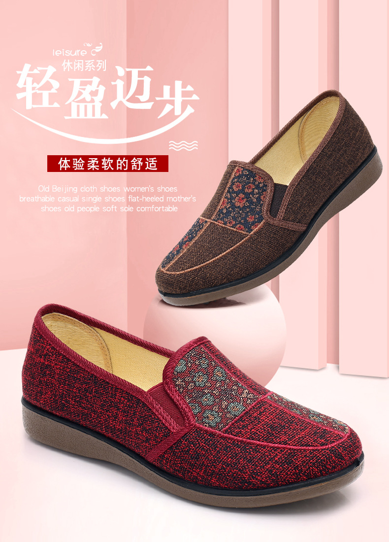 古い北京布靴、婦人靴、柔らかい底の平底マザーズシューズ、軽量中高年おばあちゃん靴、快適な老婦人カジュアルシューズ