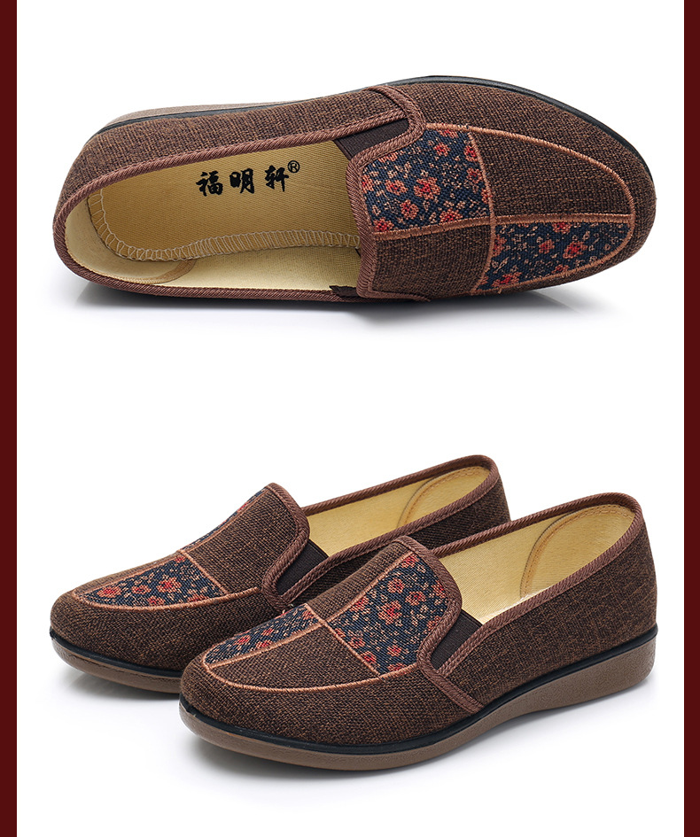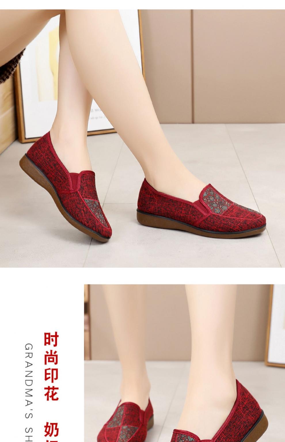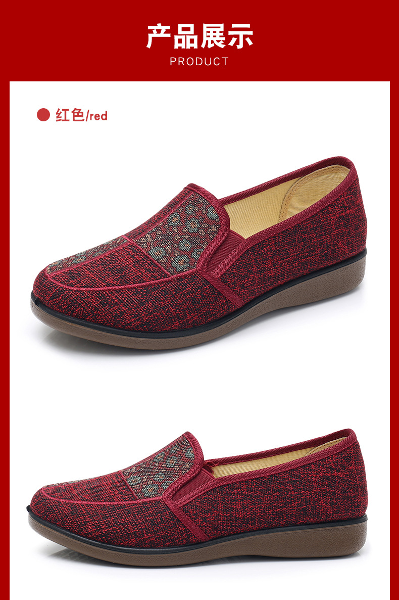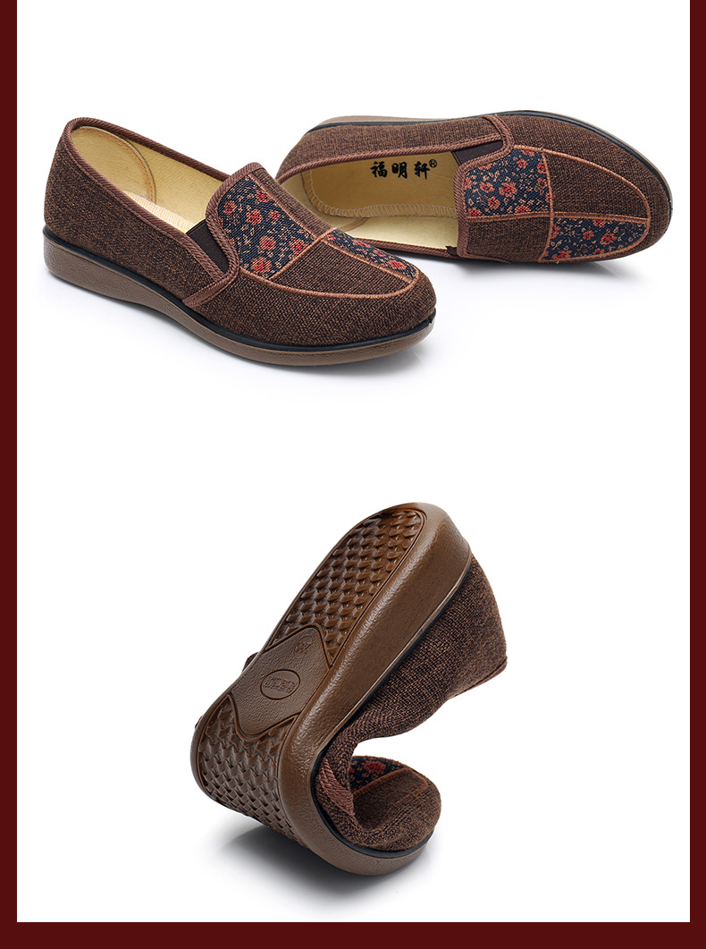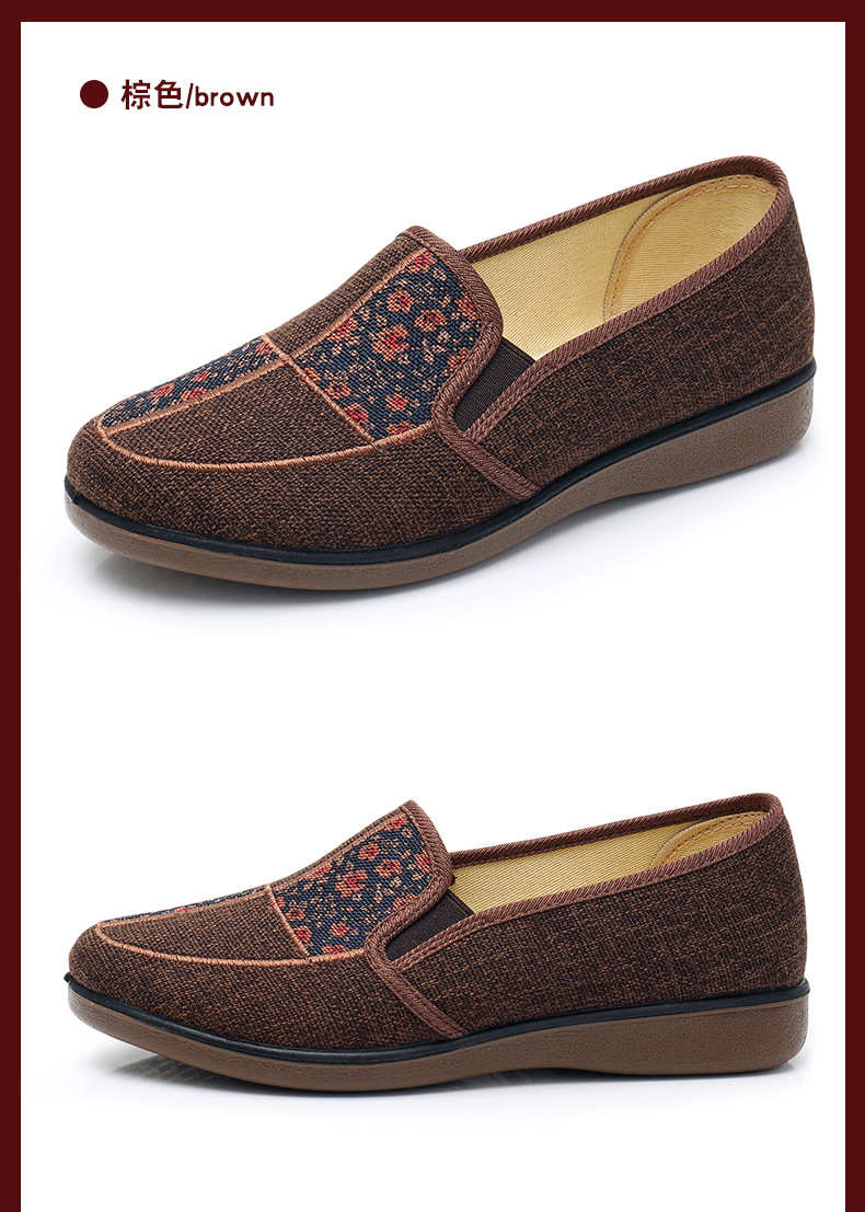 古い北京布靴、婦人靴、柔らかい底の平底マザーズシューズ、軽量中高年おばあちゃん靴、快適な老婦人カジュアルシューズ