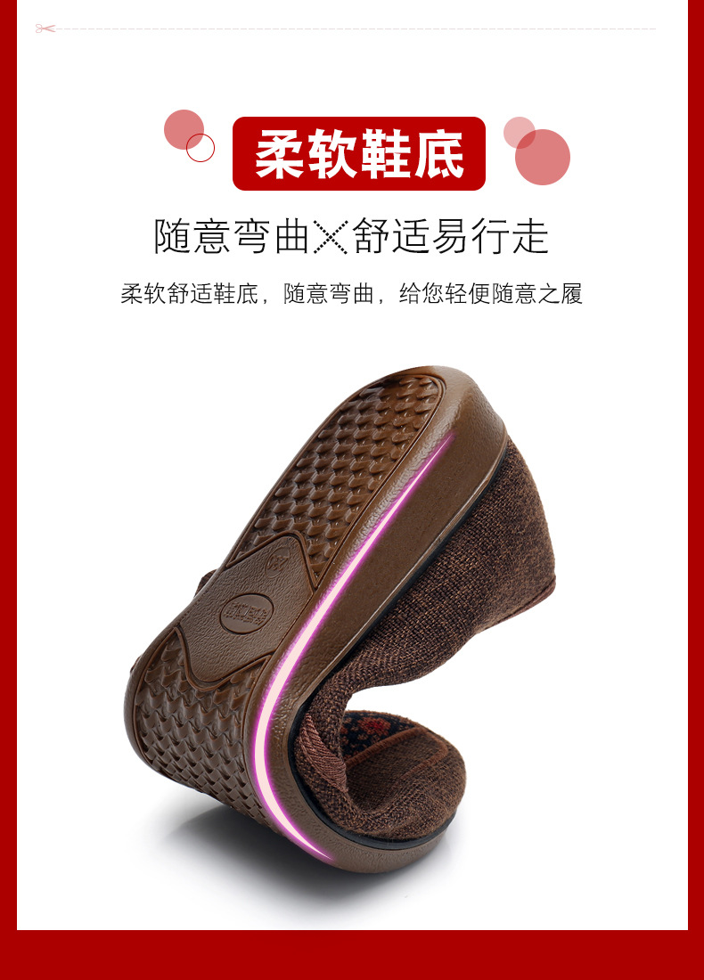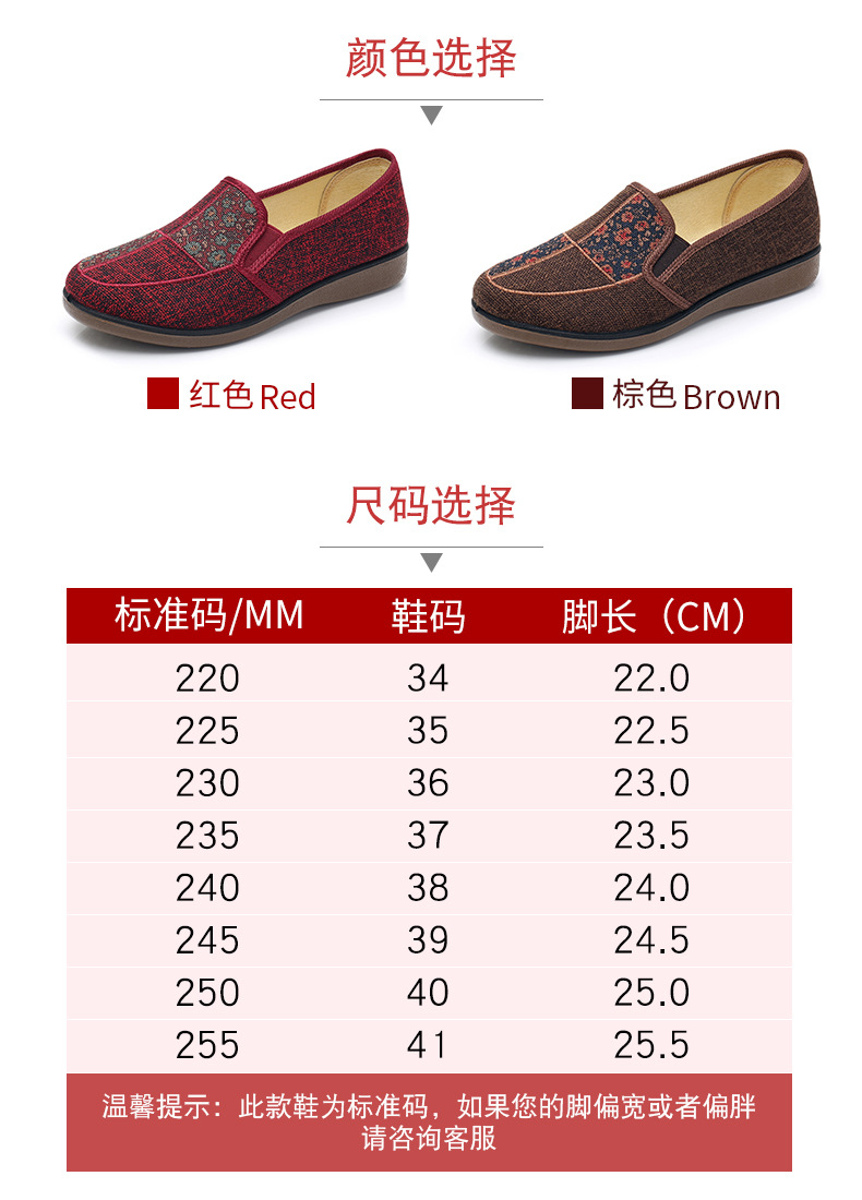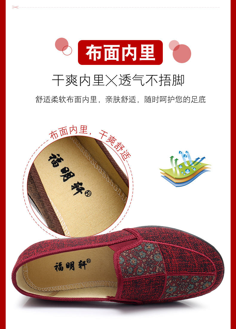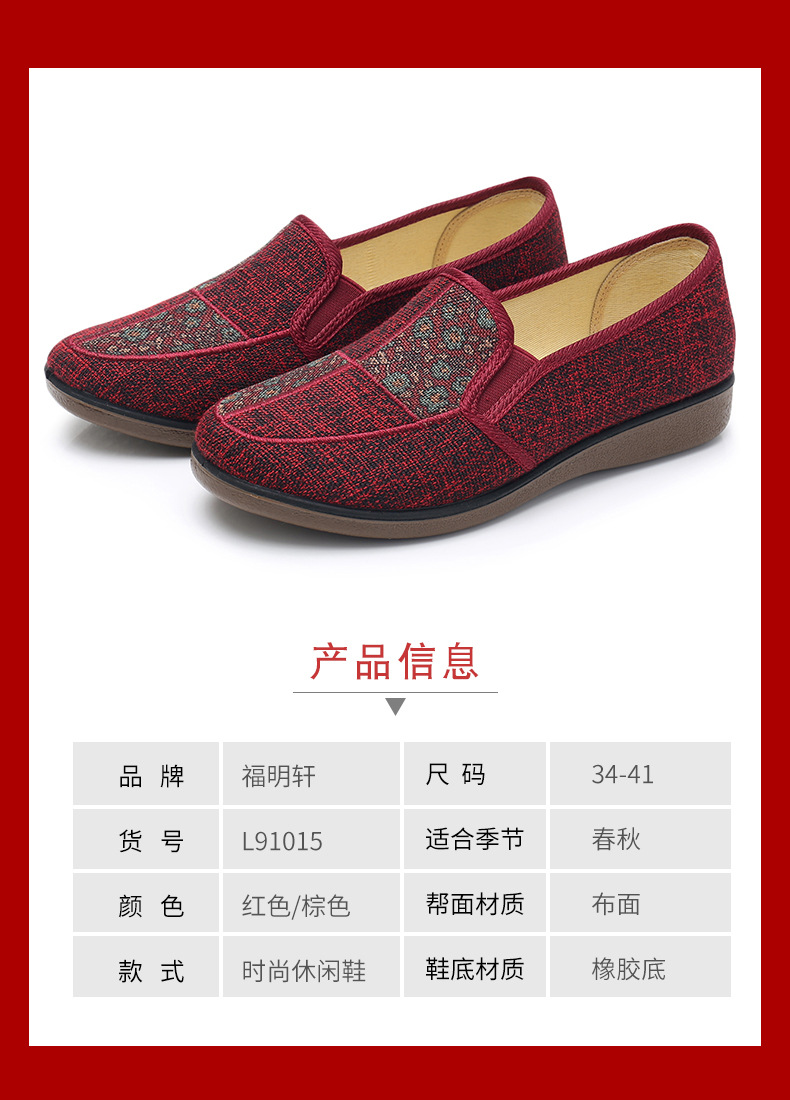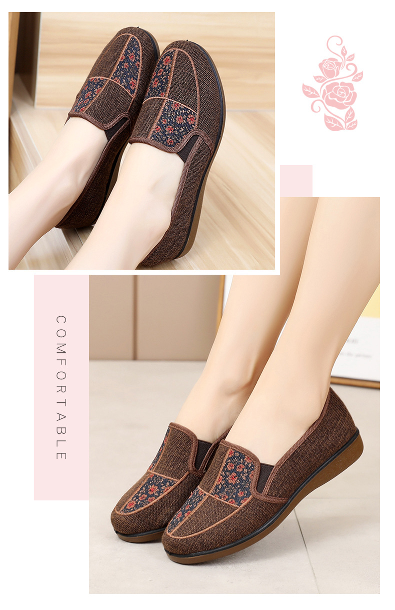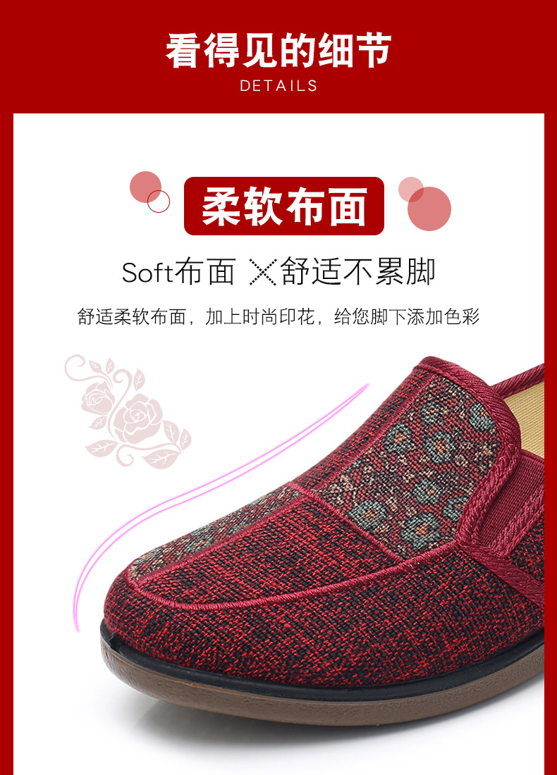 古い北京布靴、婦人靴、柔らかい底の平底マザーズシューズ、軽量中高年おばあちゃん靴、快適な老婦人カジュアルシューズ