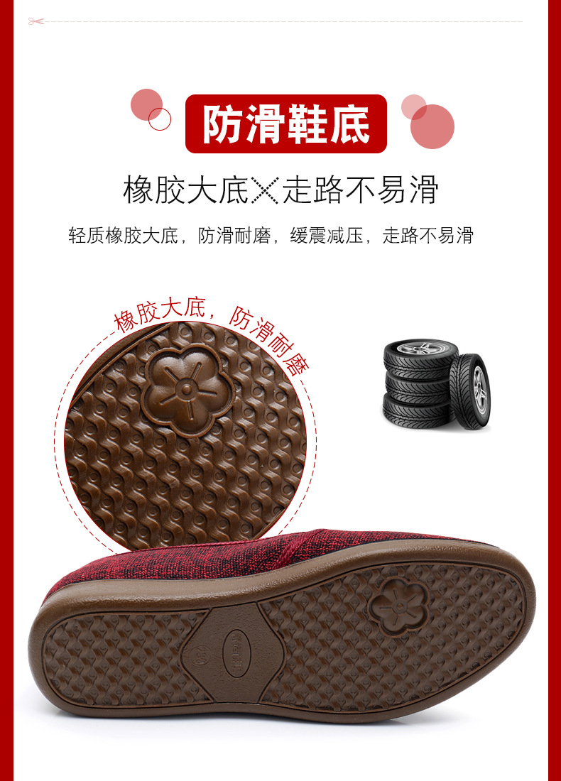 冬の女性用の古い北京綿靴、母親用のベルベット、中高年向けの厚い布靴、高齢者やおばあちゃん向けの暖かく滑りにくい靴