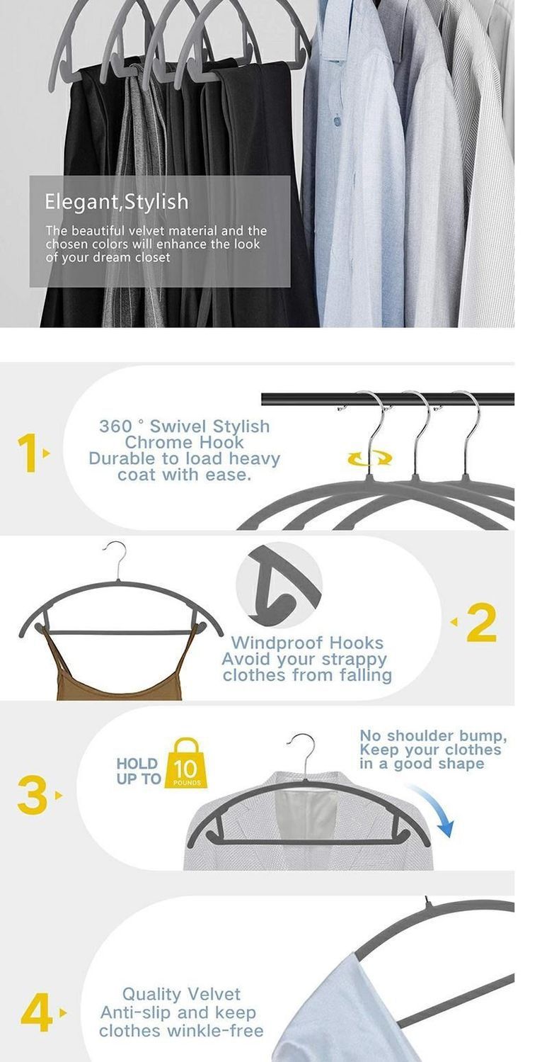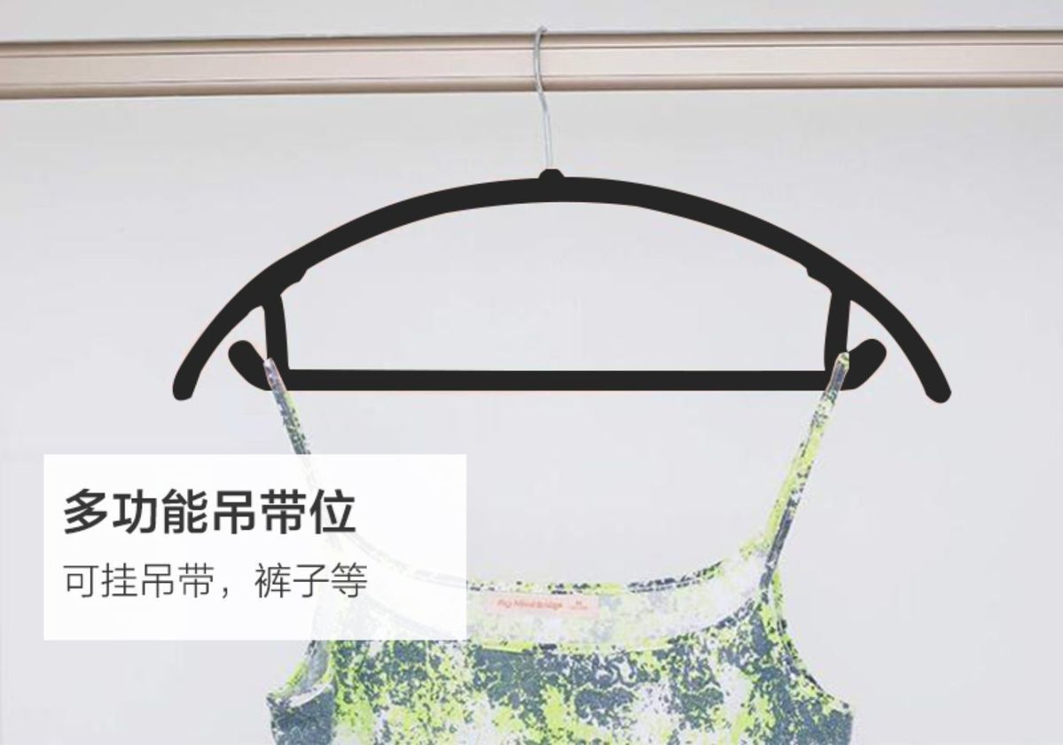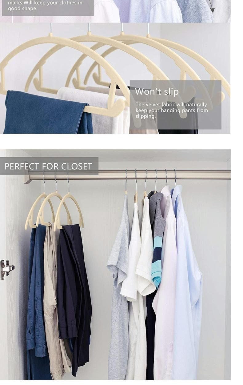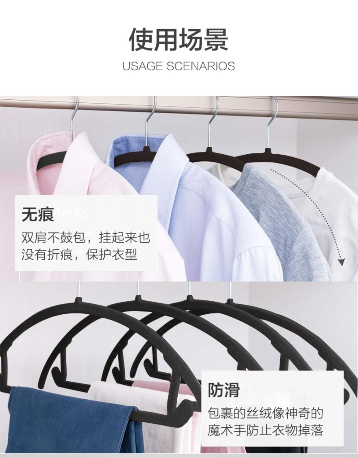 滑り止め、跡が残らない植毛ハンガー、スエード家庭用鼓こぼれ防止、曲線半円形マジック整理衣類ハンガー