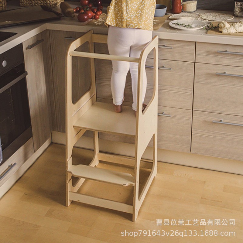 幼児の浴室の腰掛けの子供の手洗いの腰掛けの実木の質の蒙氏は塔の台所に立って腰掛けを立てます。