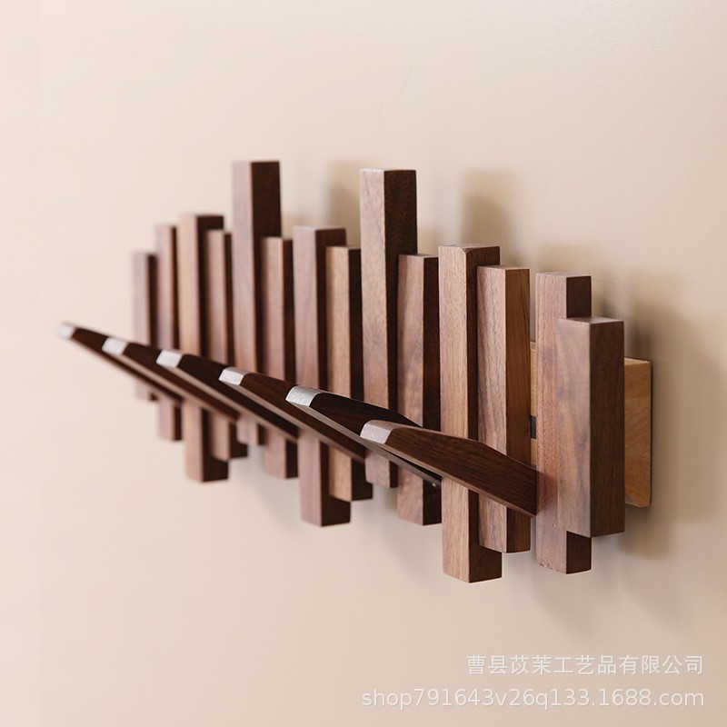 ブラックウォールナット無垢材クリエイティブピアノキーフックコートログ折りたたみフックドアパンチフリー壁掛け