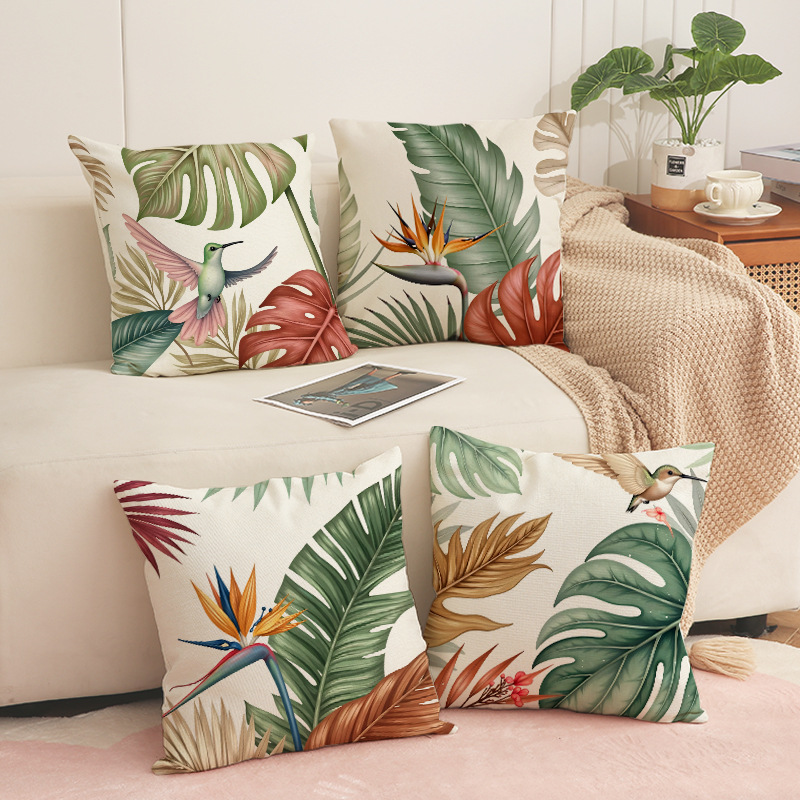 国境を越えた亜麻抱き枕カバー熱帯植物プリントセットクッションカバー家庭装飾リビングソファー枕カスタマイズ