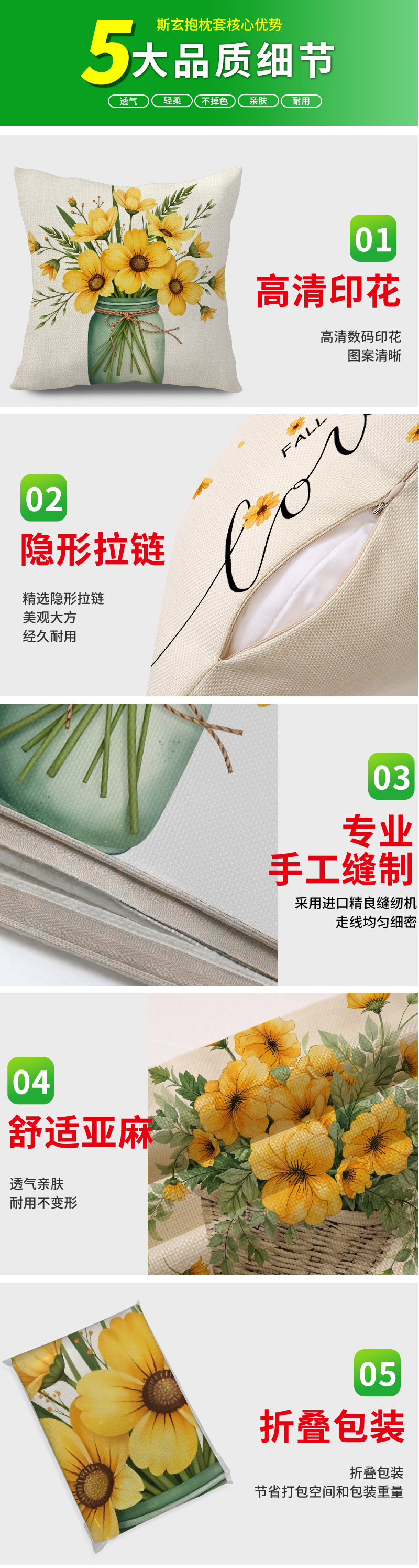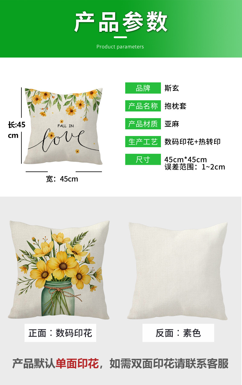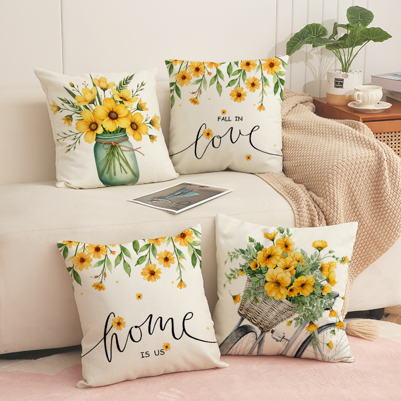 Ins風小デイジー花抱き枕カバーリネン片面プリント自動車クッションインテリアソファ枕カバー