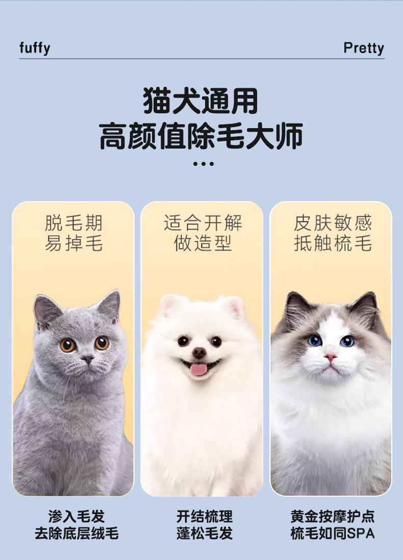 ペットの猫と犬の浮き毛コーム、マッサージ、猫の浮き毛除去、犬の浮き毛コーム、両面ペットクリーニングコーム