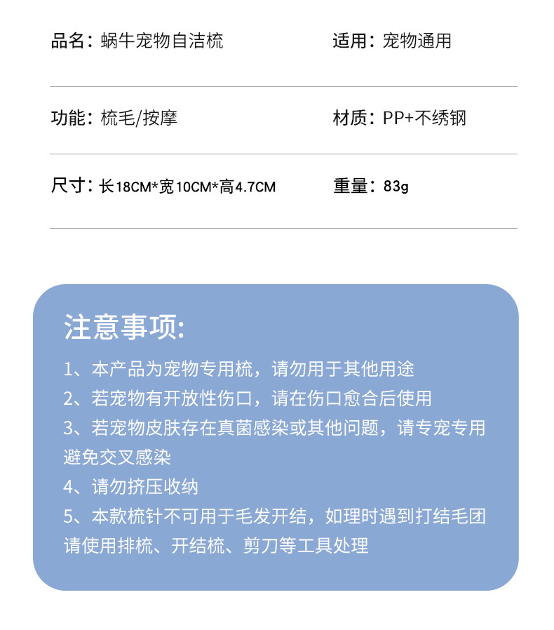 ペットの猫と犬の開結櫛は、カタツムリの金をきれいにして、毛を除去して毛を除去するブラシペットの毛を除去します。
