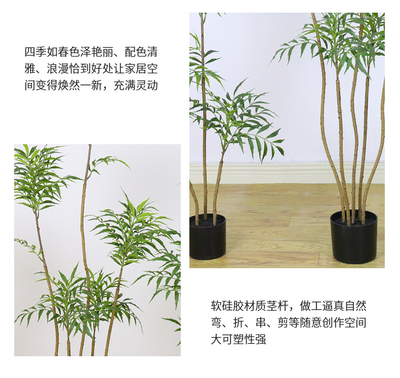 メーカー直売の卸売りは南天の竹の葉のプラスチックの植物の偽の木をシミュレーションして柳の葉の柳の枝をシミュレーションします。